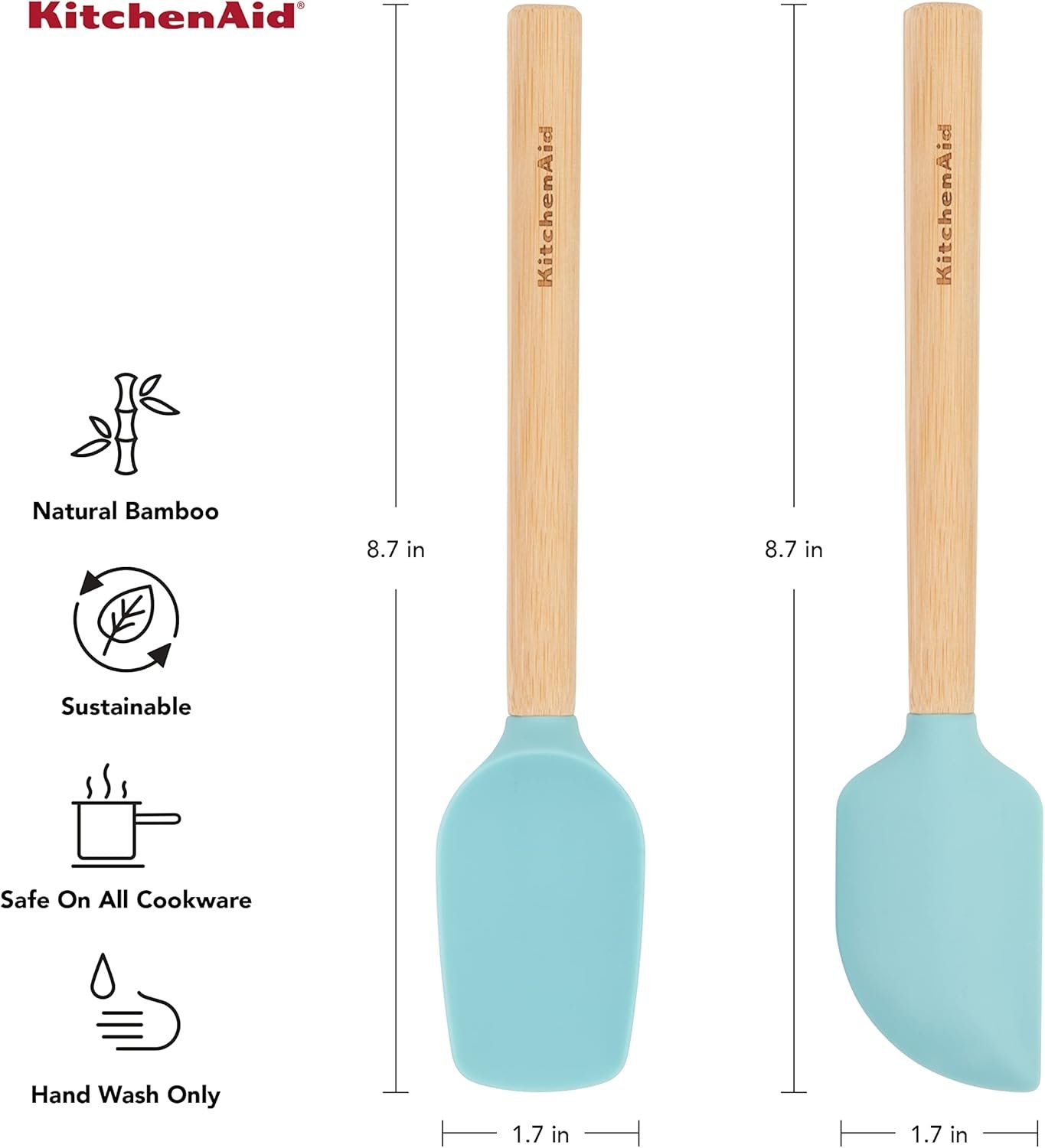 KitchenAid Bamboo Wood Handled Mini Spatula Set with Silicone Head, Set Of 2, Aqua Sky