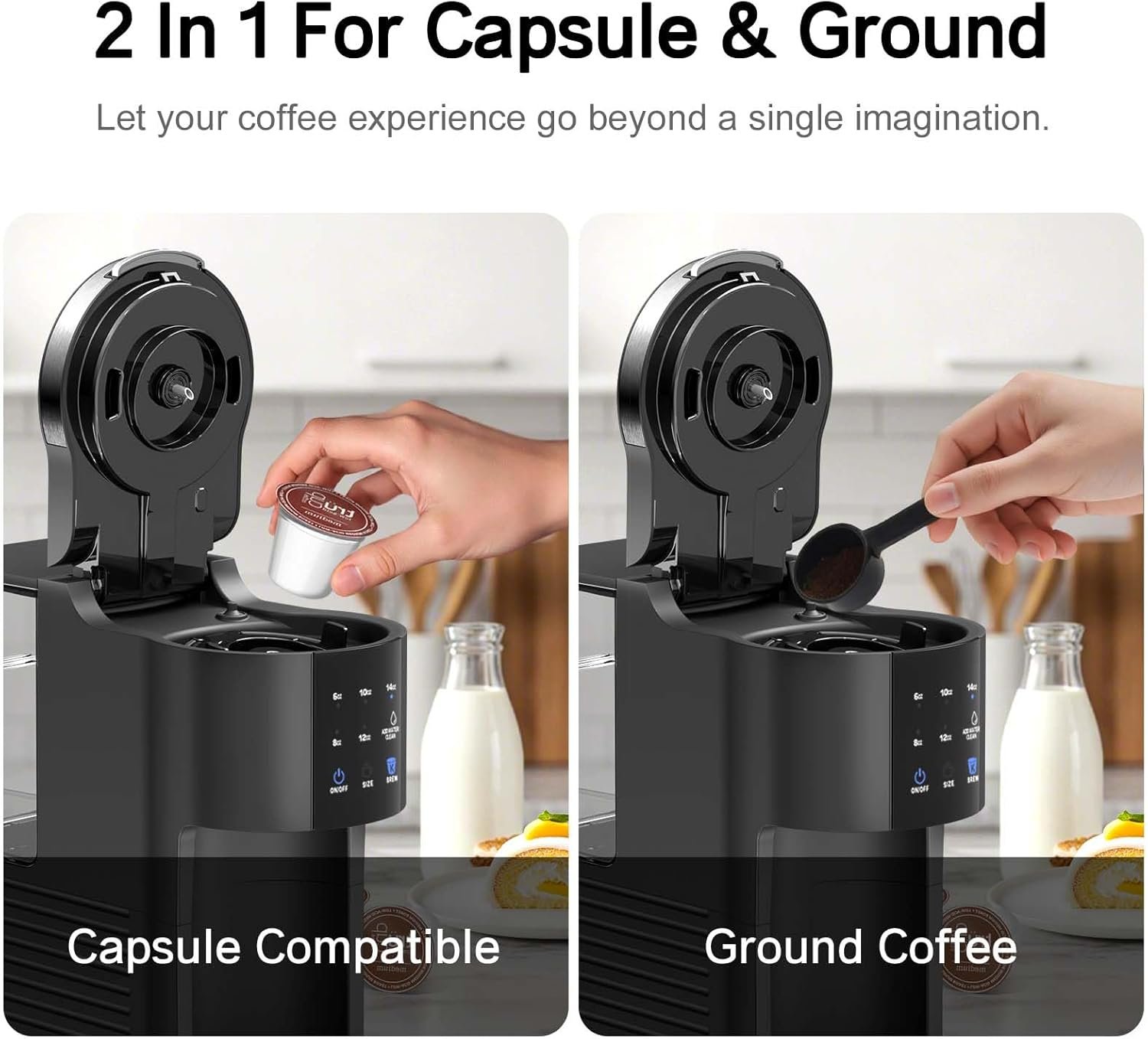 【Custom Brew Sizes】The 2-in-1 coffee machine offers 5 brew sizes—6, 8, 10, 12, or 14 oz—to suit your coffee needs throughout the day. The removable drip tray fits mugs and 7″ travel cups, making it ideal for on-the-go lifestyles in the home, office, RV, or dorm.