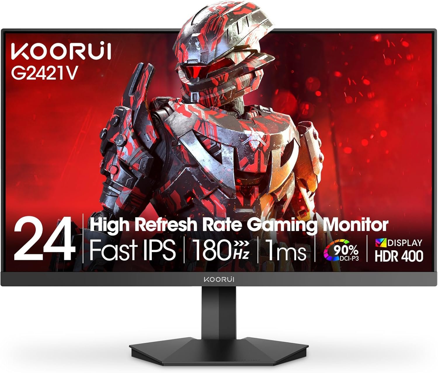 KOORUI 24″ Gaming Monitor,180Hz 1ms Fast IPS Monitor, 1440P HDR400 Display, 90% DCI-P3 Color Gamut, Adaptive Sync, Slim Frame, VESA Mountable, HDMI 2.0, DP 1.4, G2421V