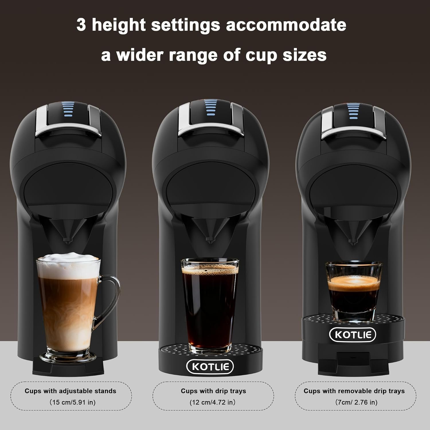 The KOTLIE 308B 5 in 1 Capsule Coffee Maker will provide you with a different coffee experience.