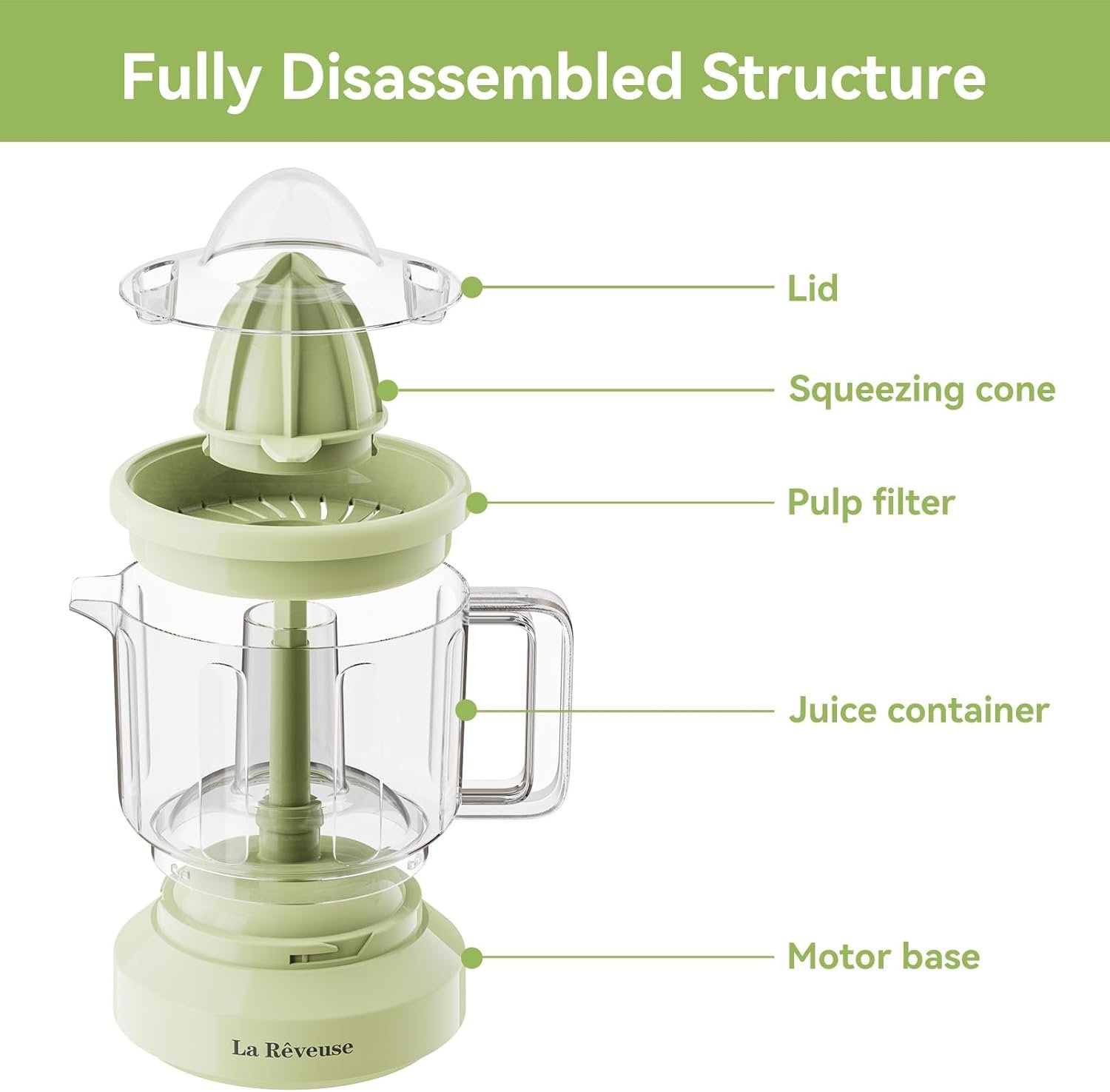 La Reveuse Electric Citrus Juicer 34 oz for Grapefruit Orange Lemon Lime Juice, 40W, Grayish Yellow