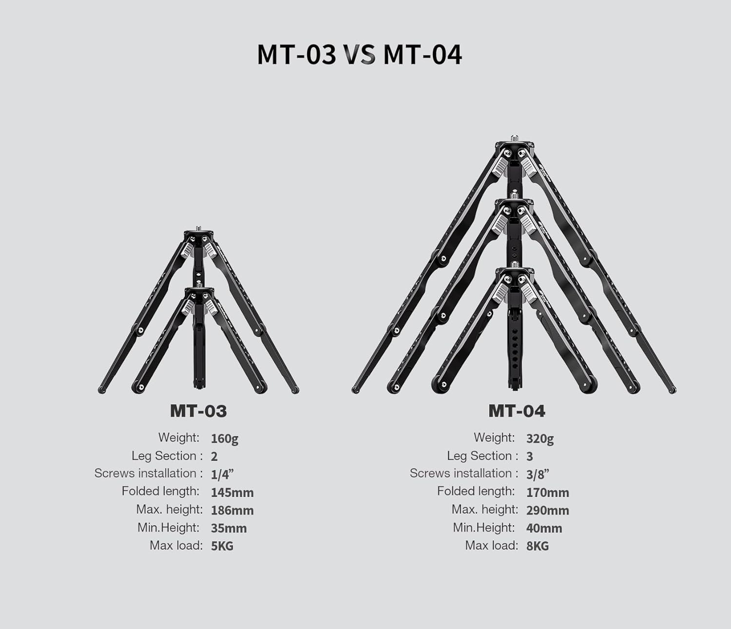 Three Angle Stops: MT-04 Tripod legs can be locked to 35° 55°,85° positions