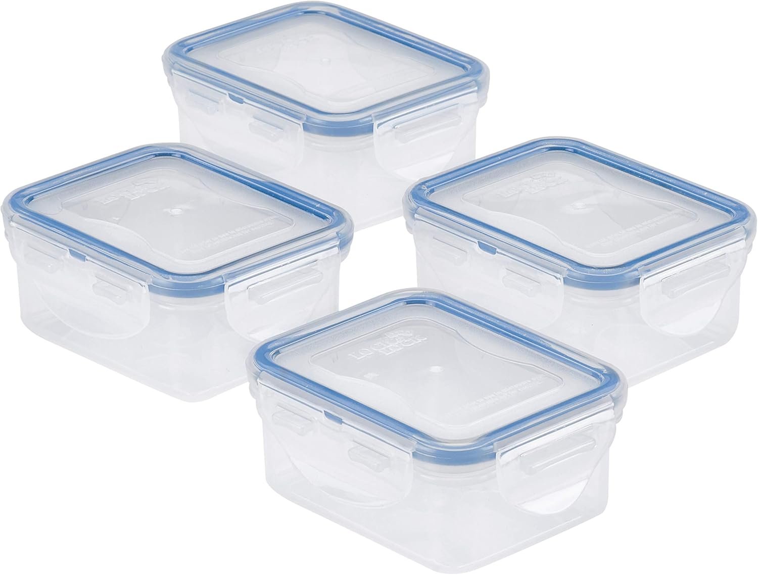 Keep foods organized and fresh Longer with the Easy essentials 6-ounce storage container set. Ideal for snacks, dry ingredients, or even leftovers, this set of four 6-ounce rectangular containers is perfect for getting refrigerators and cupboards organized or for bringing extra ingredients or side dishes to picnics or barbeques. Lock & Lock patented 4-hinge locking system has been durability tested to last up to 3 million uses, and the enhanced silicone seal is 100% airtight to keep foods fresh longer and 100% leak-proof to prevent messy drips and sloppy spills. Bpa-free construction provides a healthy, versatile, and convenient storage solution for the refrigerator, freezer, pantry, or anywhere your foods need to stay fresh and organized. Plus, easy essentials containers are microwave safe for fast and convenient heating and dishwasher safe for quick and easy cleanup. For 100% leak-proof food storage containers that keep foods fresh and at the ready, reach for the easy essentials 6-ounce storage container set.