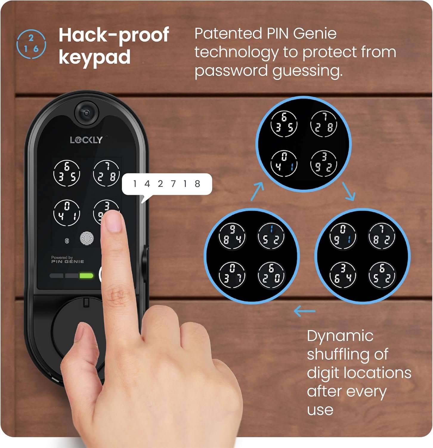 REAL-TIME MONITORING AND ALERTS – Smart lock for front door monitor Open/Closed Lock Status from Anywhere with Customizable Auto-Locking Feature & Offline Access Codes. Peek-Proof Digital Patented PIN Genie Keypad, prevents others from seeing your access codes and leaving behind fingerprints.