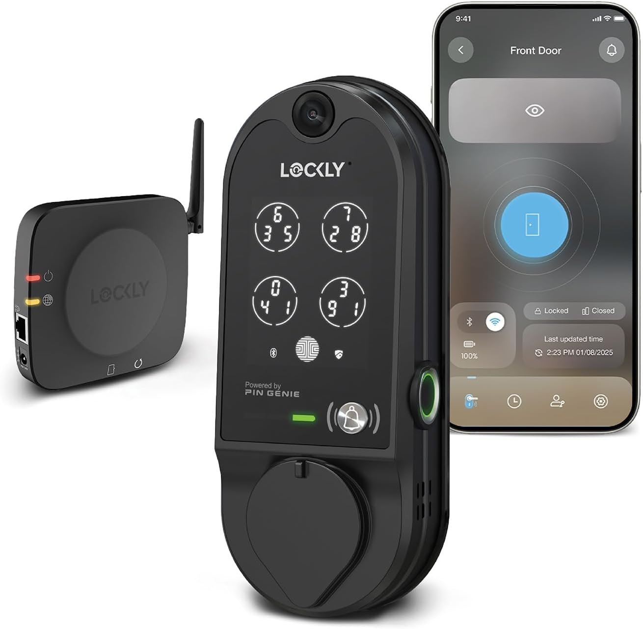 Lockly (Refurbished) Vision Smart Lock with Camera, Video Doorbell Keyless Entry Door Lock Wi-Fi, PIN Genie Keypad, Fingerprint, Remote Control, Easy Installation, No Monthly Fee