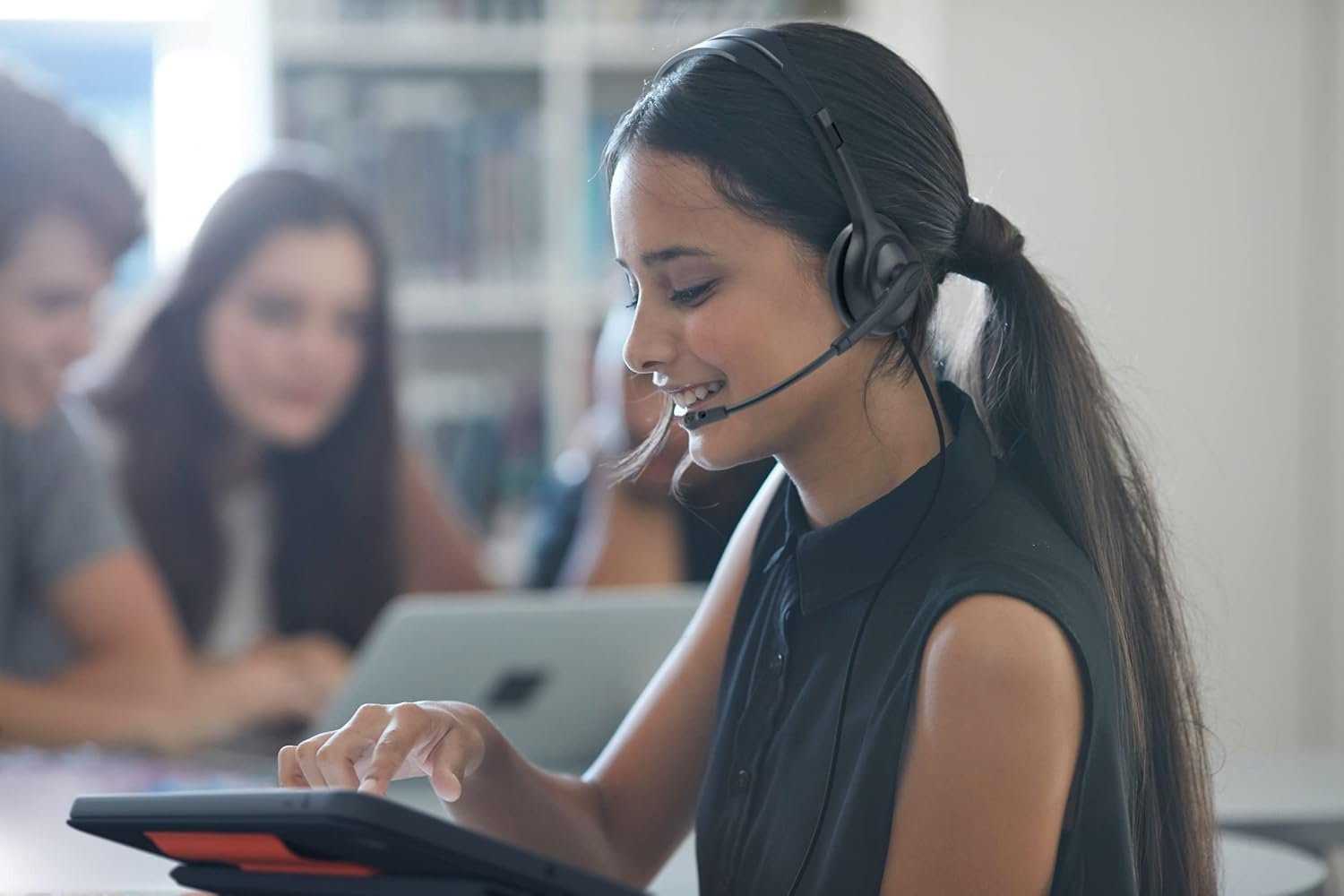 180° ROTATING MICROPHONE – Students can position boom on the left or right for better voice capture and background noise reduction.