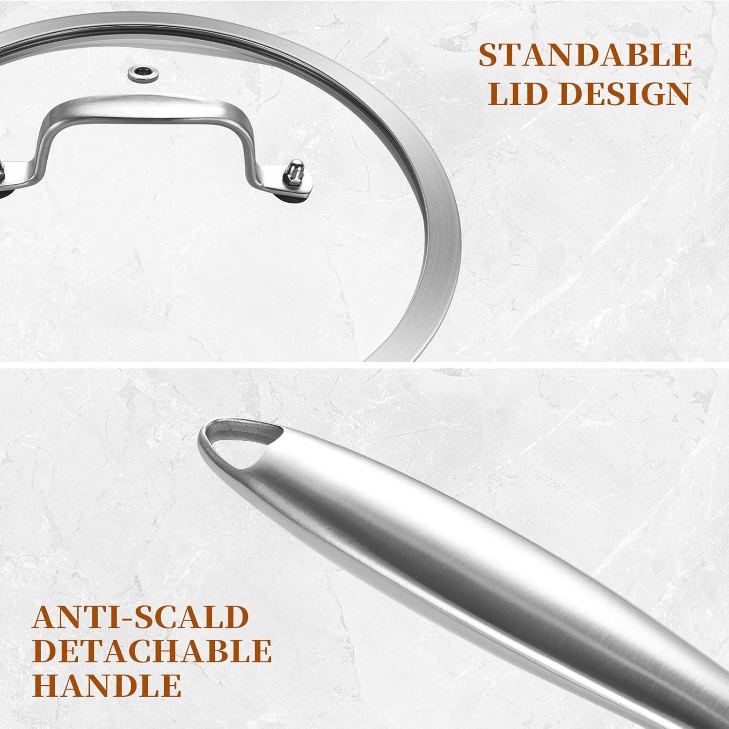 Glass Lid with Steamer Vent:The stainless steel pan with a Glass Lid and steam vent allows you to monitor your food through the lid during the cooking.