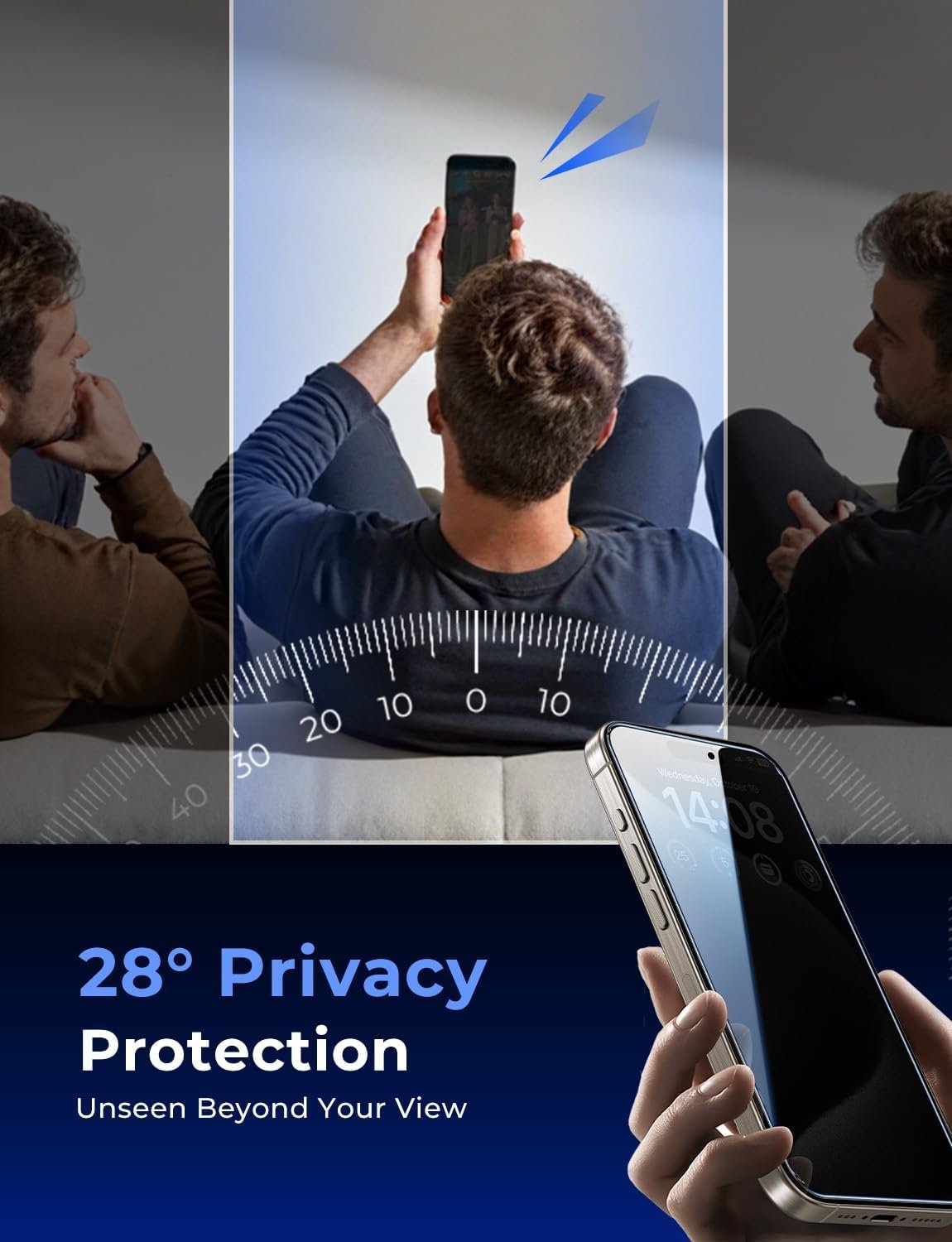 [28° Privacy Protection] Privacy tempered glass screen protector for iPhone 15 Pro Max 6.7 inch. Keep your information to yourself. Good choose when you are in the public occasions.