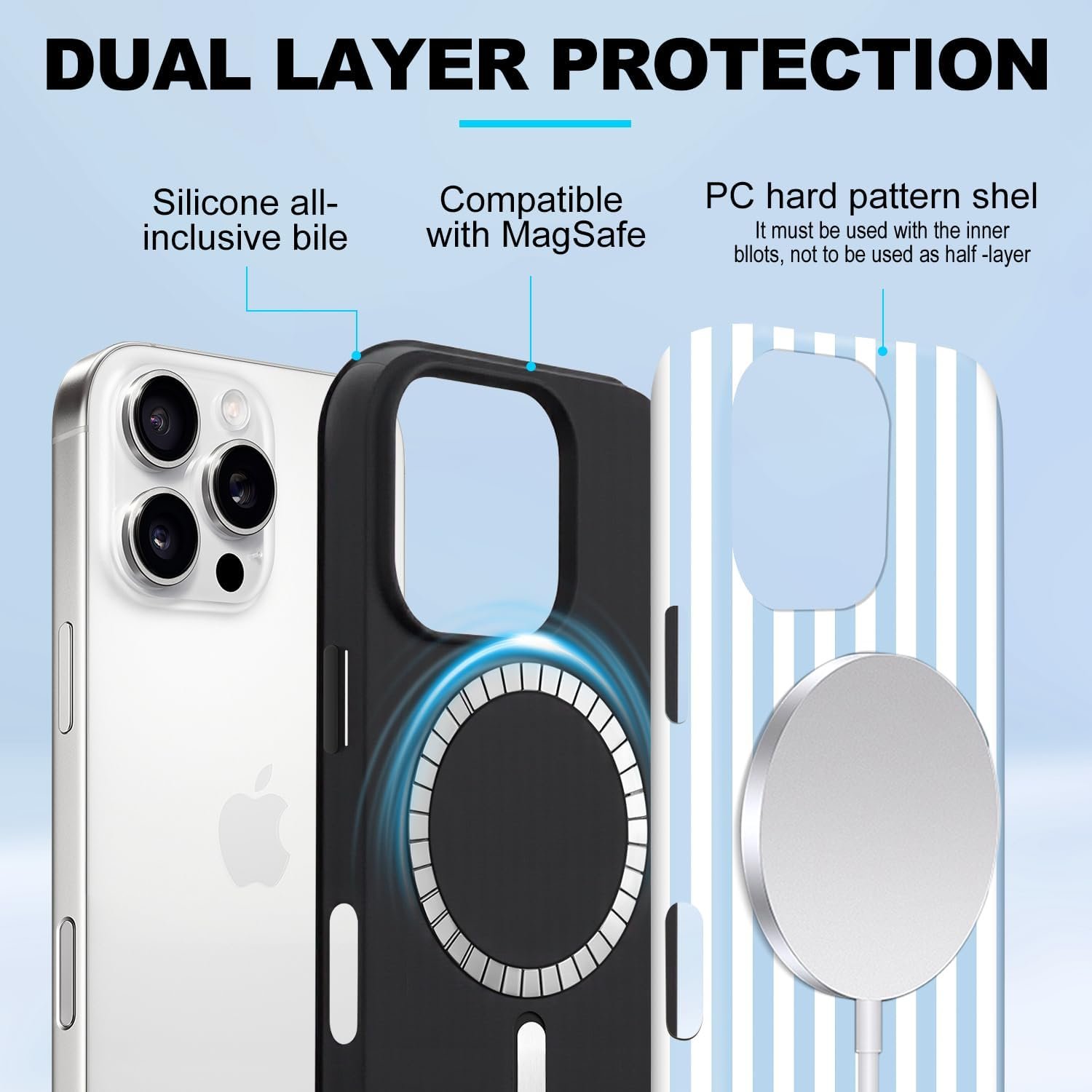 【Precise Cutouts】 We designed for the phone case has a 1.5mm protrusion to prevent screen breakage. It wraps around the edge of the phone to protect your screen from damage in case of accidents. Our phone case is compatible with MagSafe