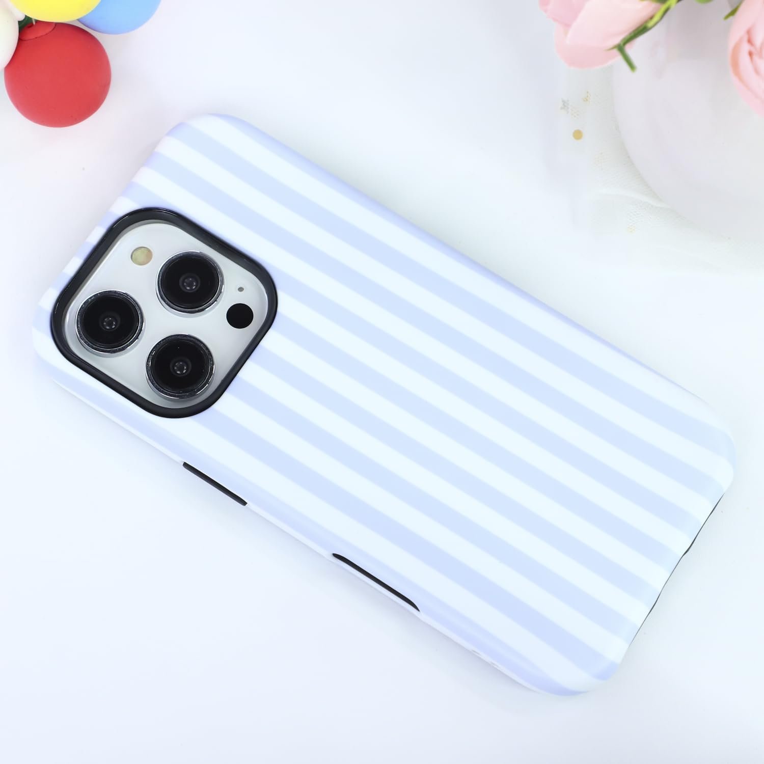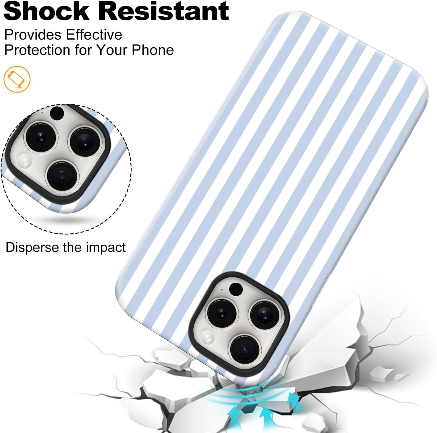 Magnetic for iPhone 13/14 Case Cute Stripes Phone Case, Shockproof Slim TPU and Hard PC Protective Phone Cover Compatible with MagSafe Designed for Women Girls, Blue and White