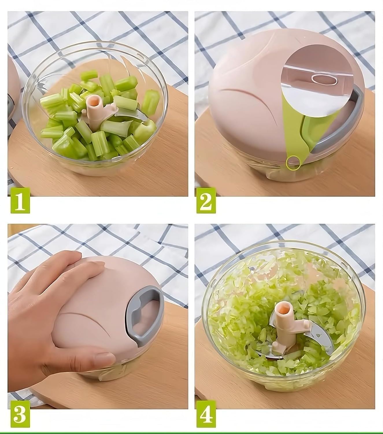 🥕 Effortless food preparation with adjustable string pulls for different chopping sizes.