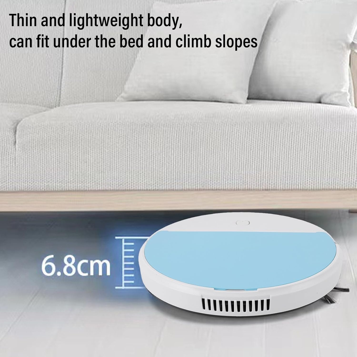 [Compact and Powerful Design] Standing at just 60mm tall this robot vacuum cleaner easily fits under furniture like sofas and beds. equipped with dual side sweep brushes it expands the suction range and efficiently collects dust and debris from open floors walls and edges. its design ensures it can any room in your home without hassle.