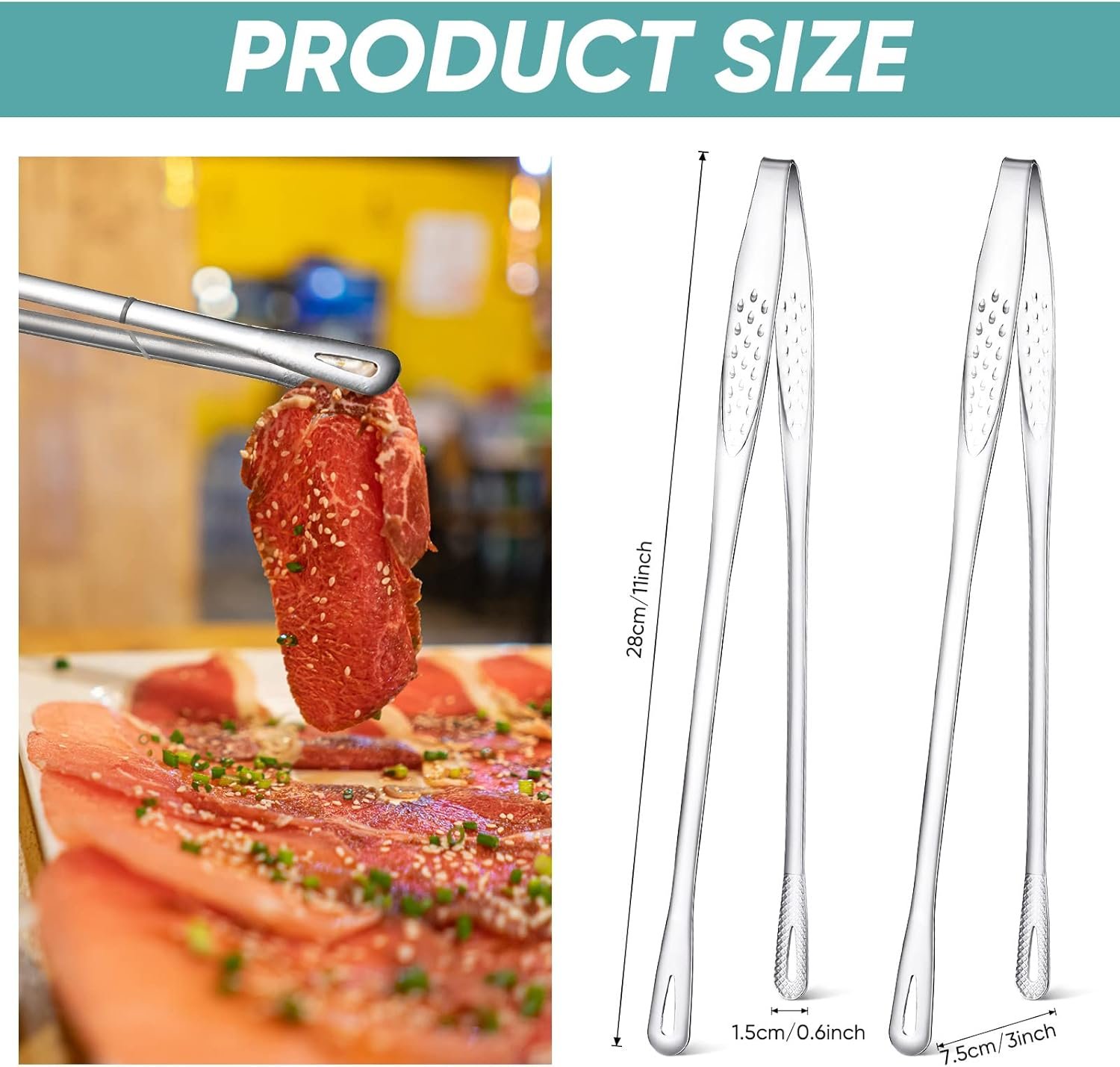 meekoo 6 Pcs 11 Inches Stainless Steel Korean BBQ Grill Tongs Japanese Barbecue Tongs for Cooking Portable Kitchenware Home Outdoor Steak Salad Food