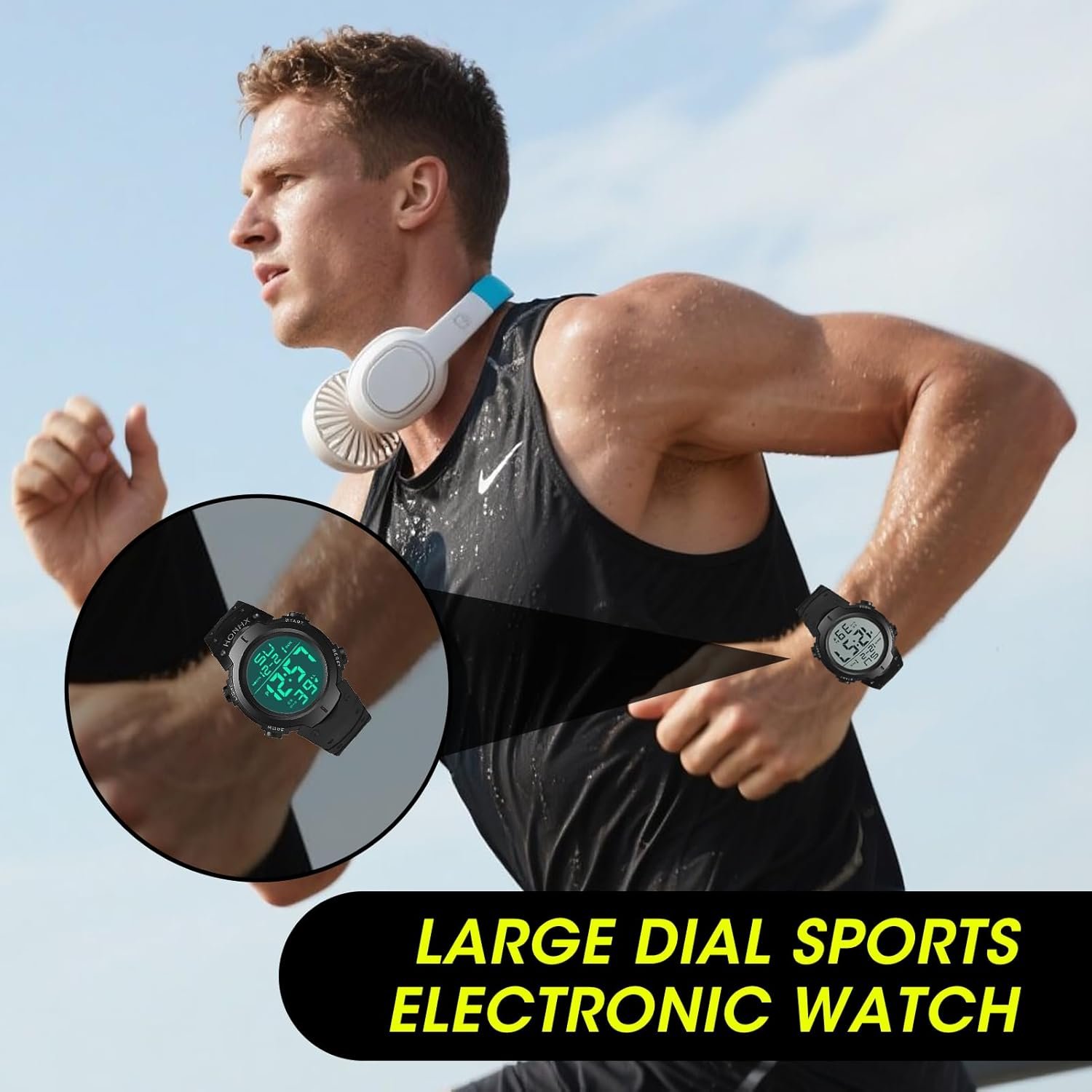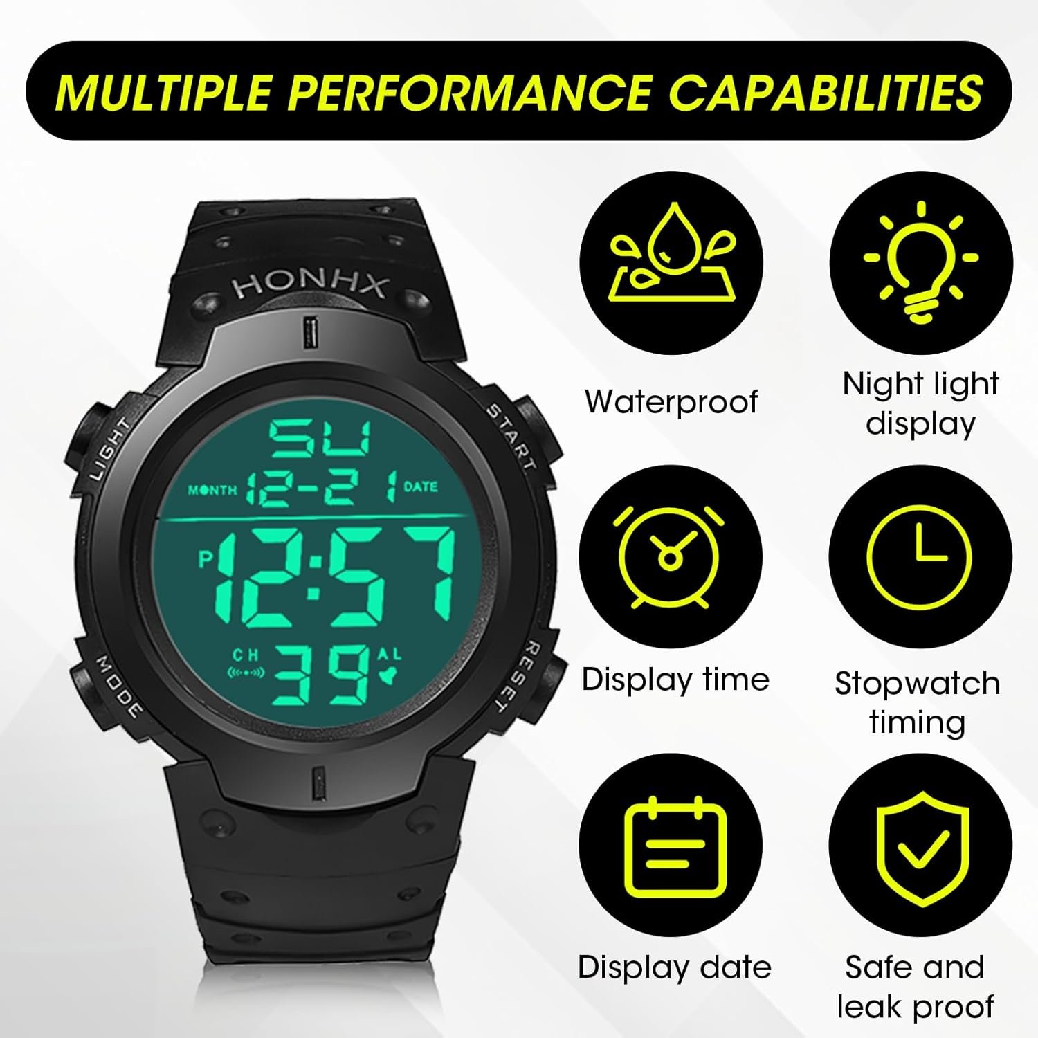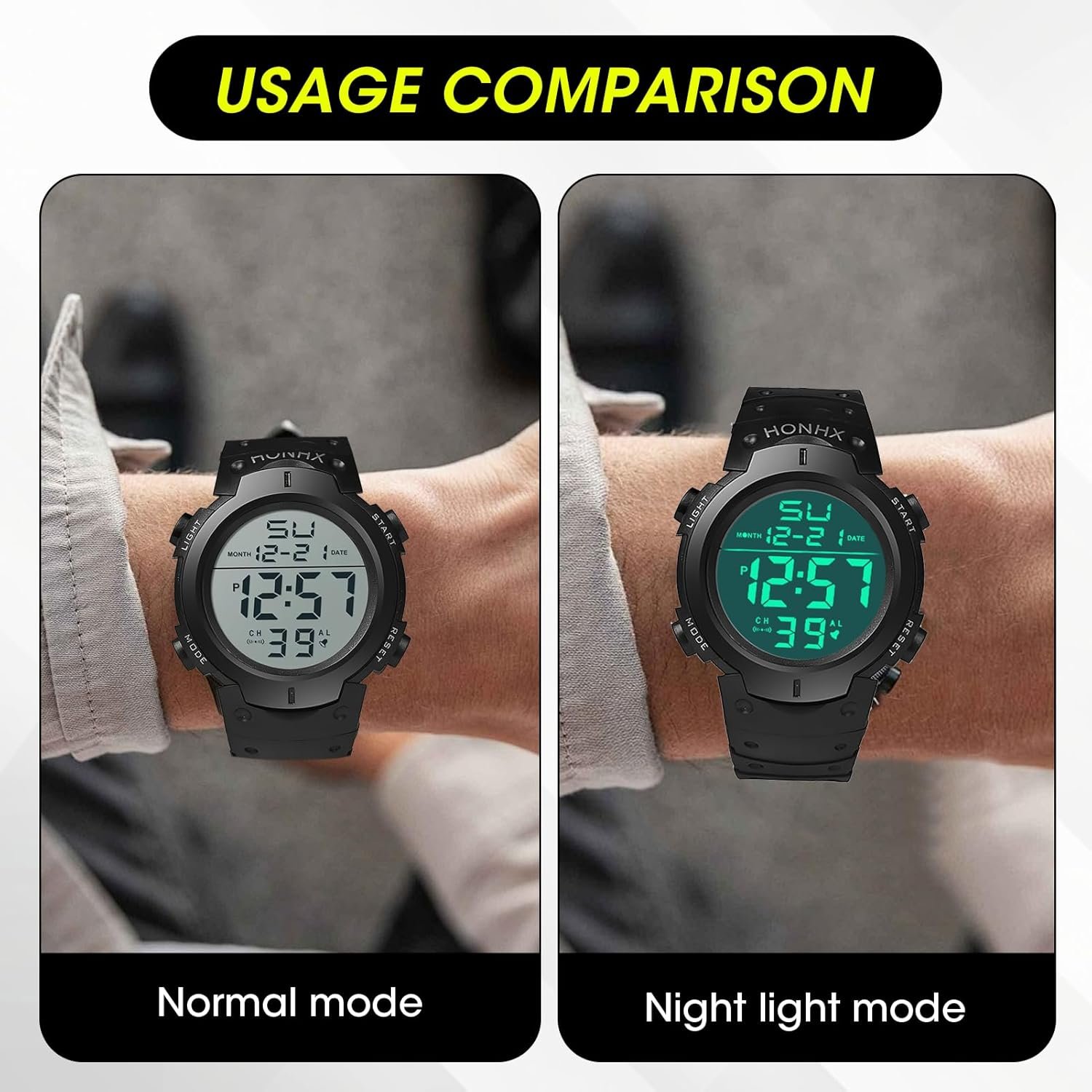 Please note that this digital watches for men only supports a small amount of water splash caused by hand washing and rain, and does not support wearing in swimming, showering and sauna.