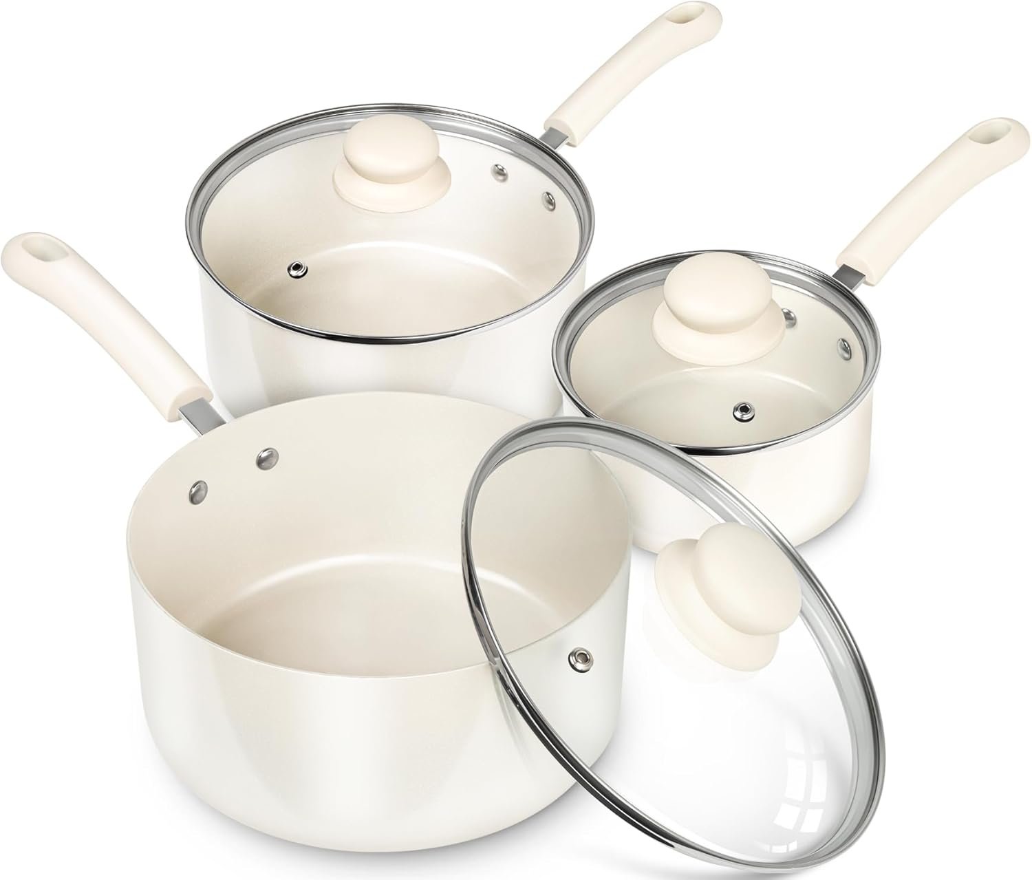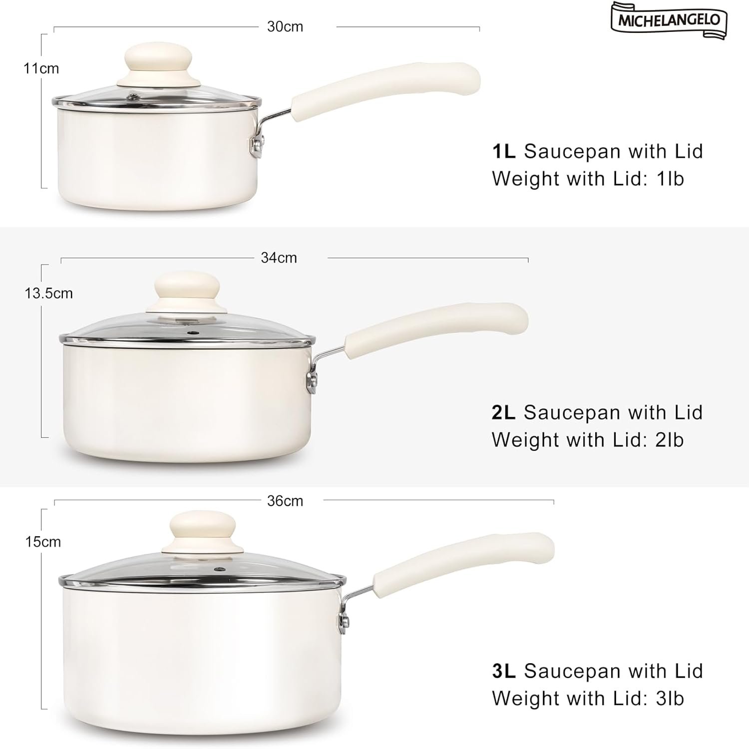 MICHELANGELO Nonstick Sauce Pan Sets, Ceramic Saucepan with Lid, Multipurpose Pot with Lid, Non-Toxic Saucepans, 1QT & 2QT & 3QT, White