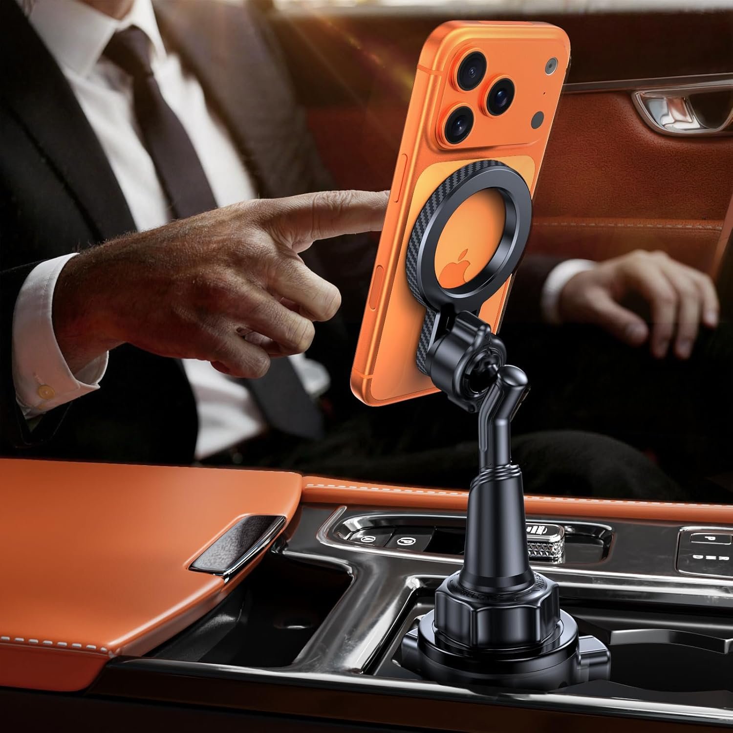 Upgraded-Latest Version: Miracase has upgraded this magnet car cup phone holder in two key areas: 1. Featuring a magnetic design with 16 upgraded N55 high-strength magnets, the car phone holder enables easy one-handed operation and flexible angle adjustment. 2. Its reinforced vertical neck provides extreme stability. Even on bumpy roads, your phone stays firmly mounted without loosening or falling.