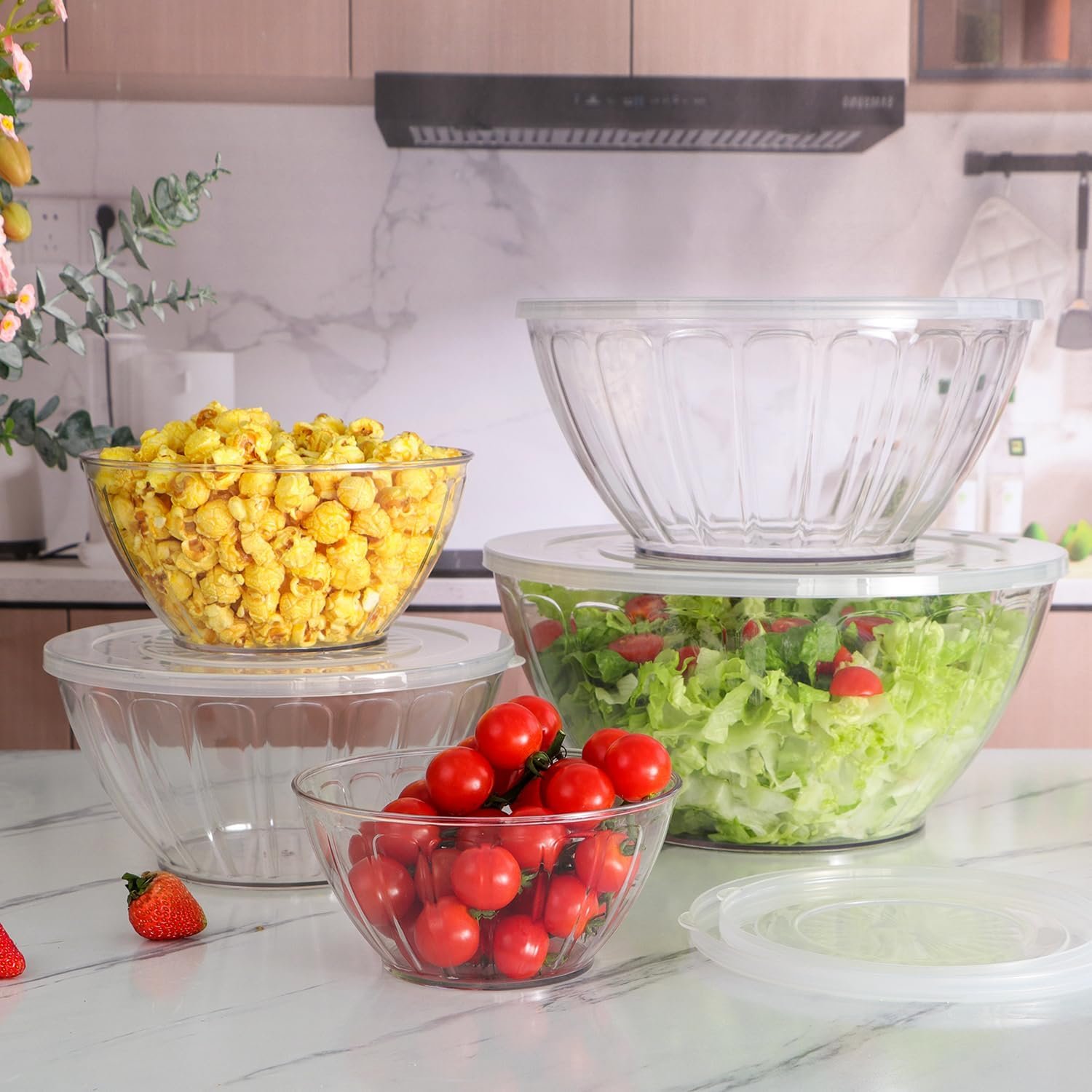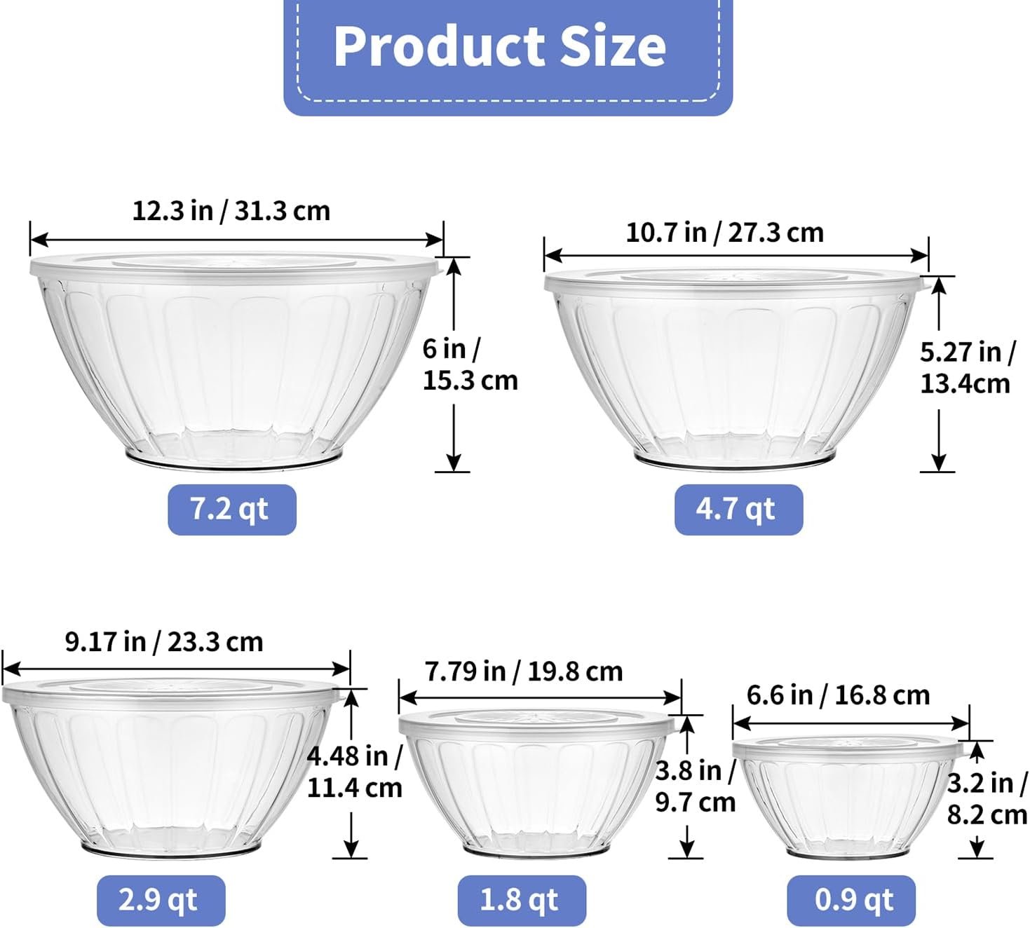 Various Sizes: Package includes 5 plastic mixing bowls with lids of different sizes (7.2, 4.7, 2.9, 1.8, and 0.9 quarts), easily meet your cooking and baking needs