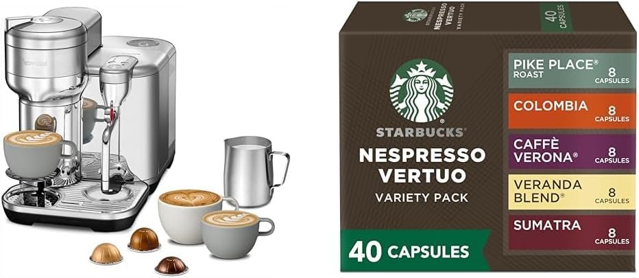 Nespresso Vertuo Creatista Coffee and Espresso Maker by Breville, Brushed Stainless Steel + Starbucks Capsules, Vertuo Line