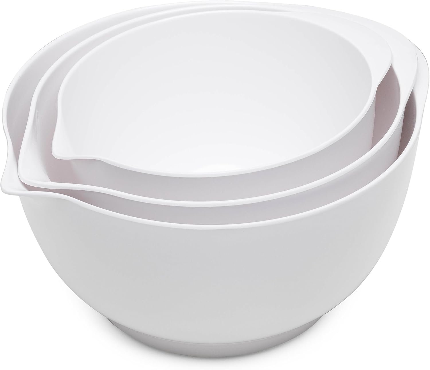 Nesting Mixing Bowls Set, 3 Piece Melamine Bowls Set, 2.5 quart, 3.5 quart, 4.5 quart, Non Slip Base with Easy Pour Spout, Kitchen Cooking and Baking Supplies, White