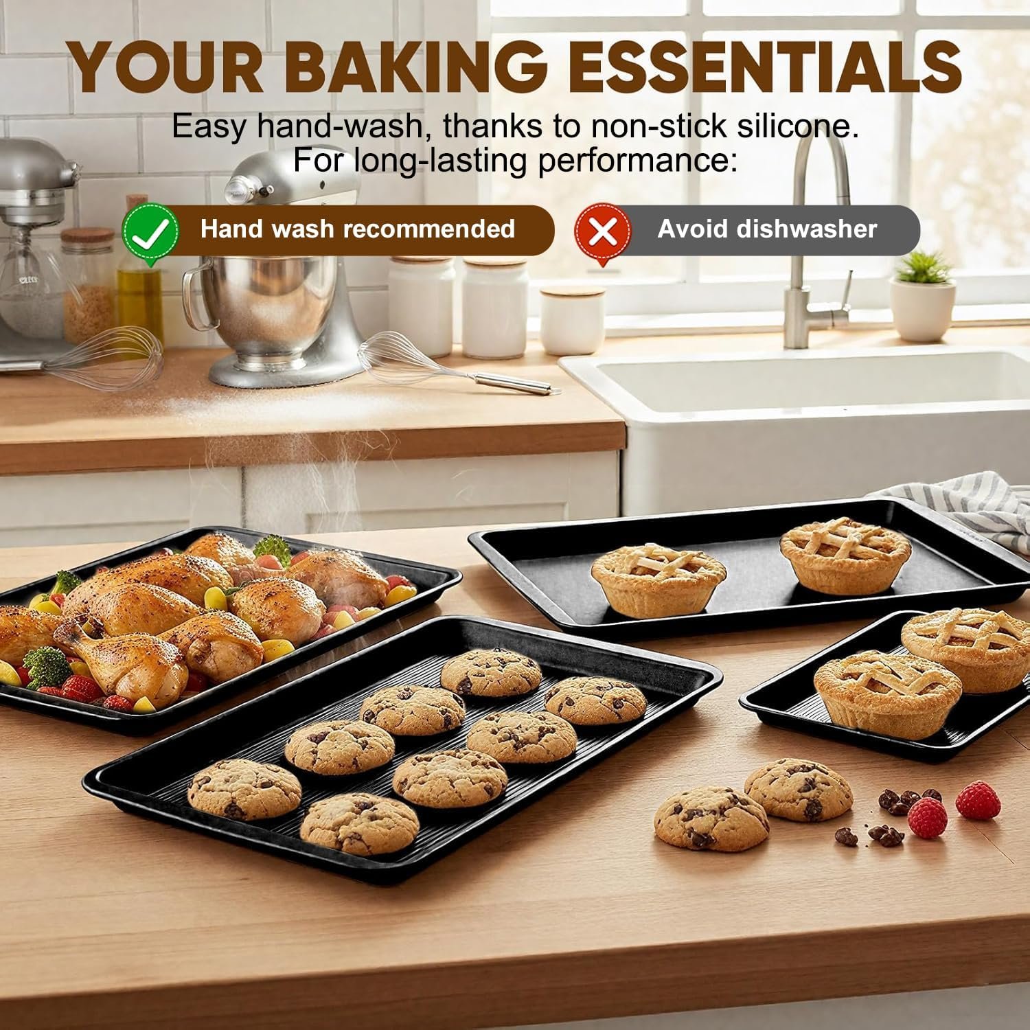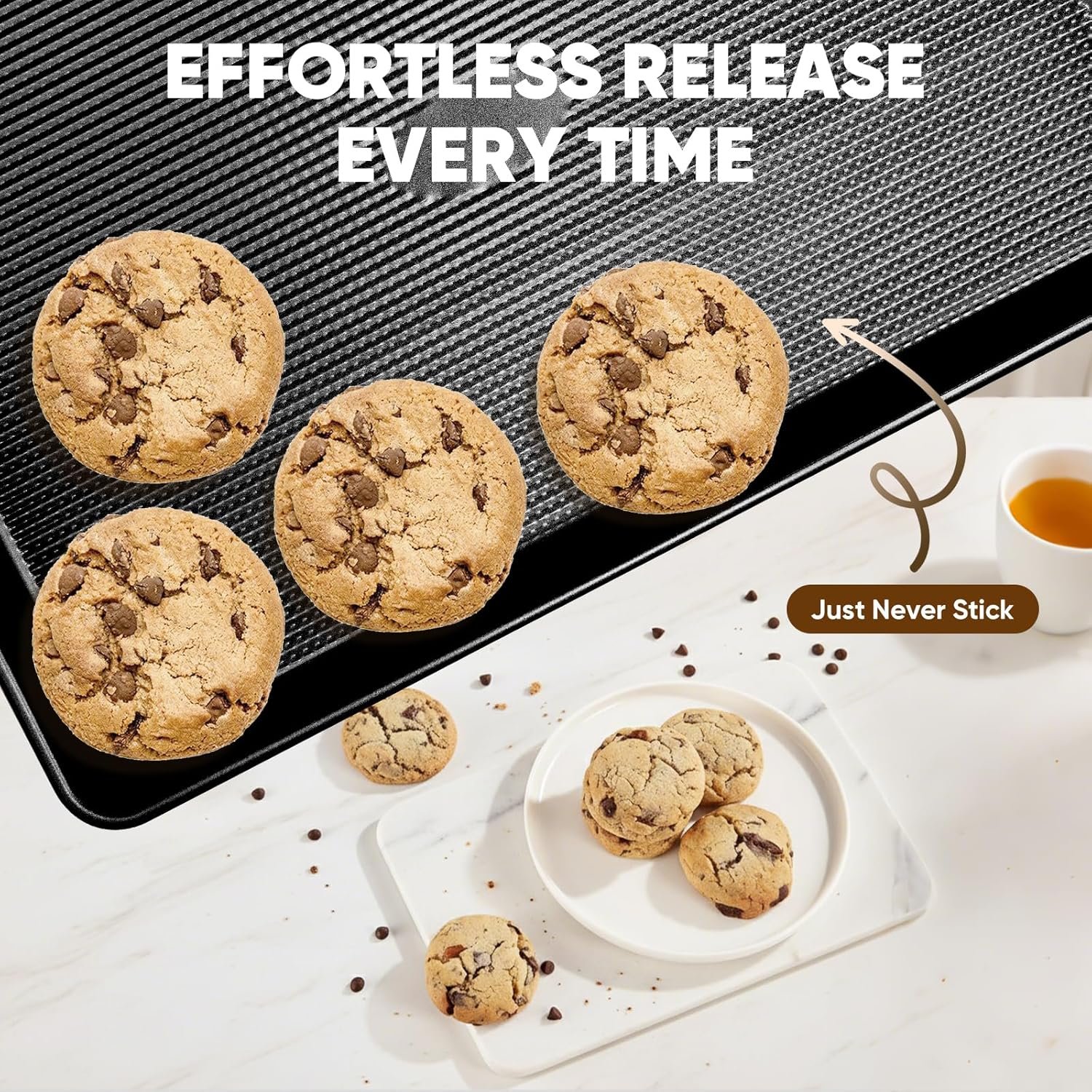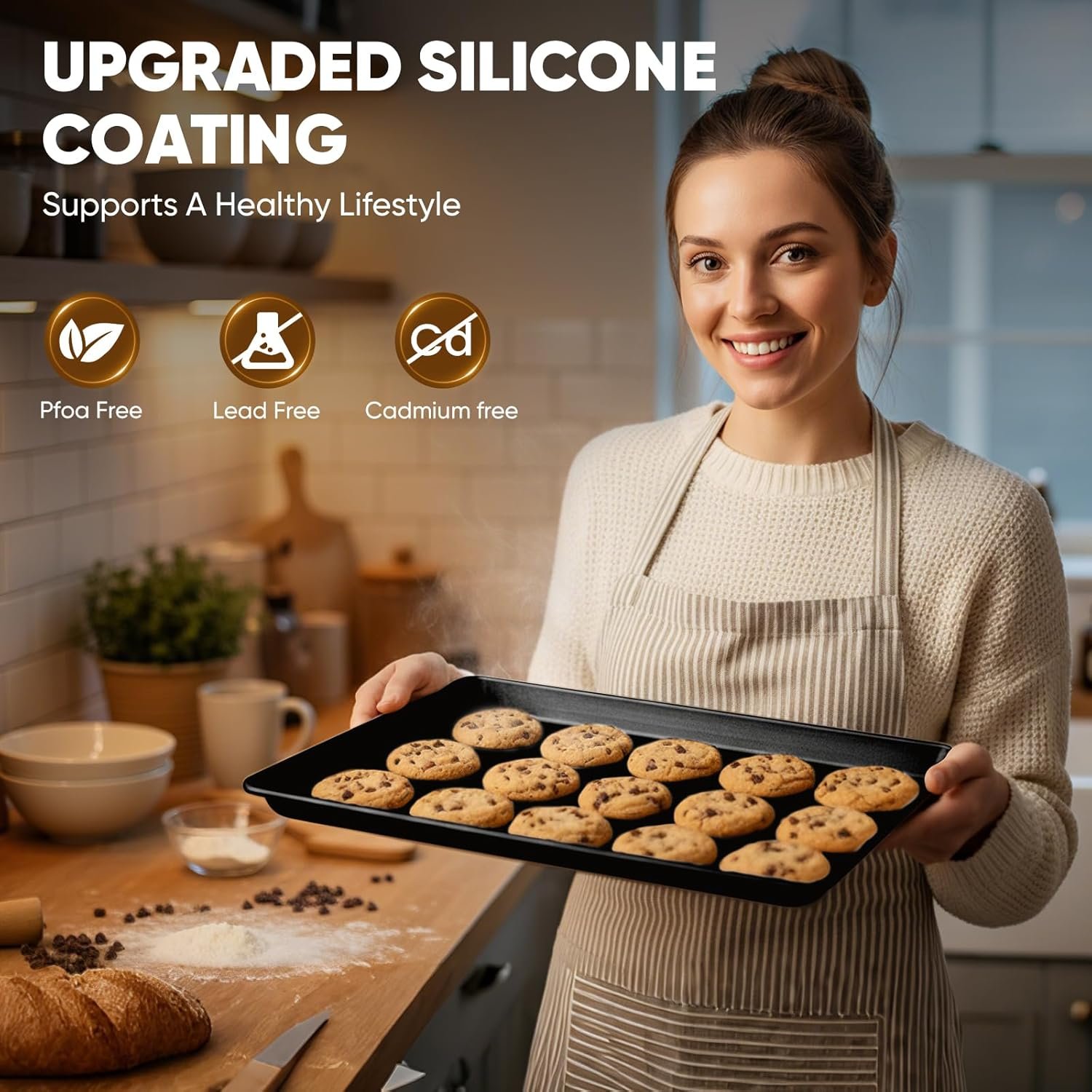 【Advanced Striped Texture Design】The innovative striped pattern across the baking surface promotes optimal heat distribution for perfectly even cooking results while enhancing the non-stick performance for flawless food release.