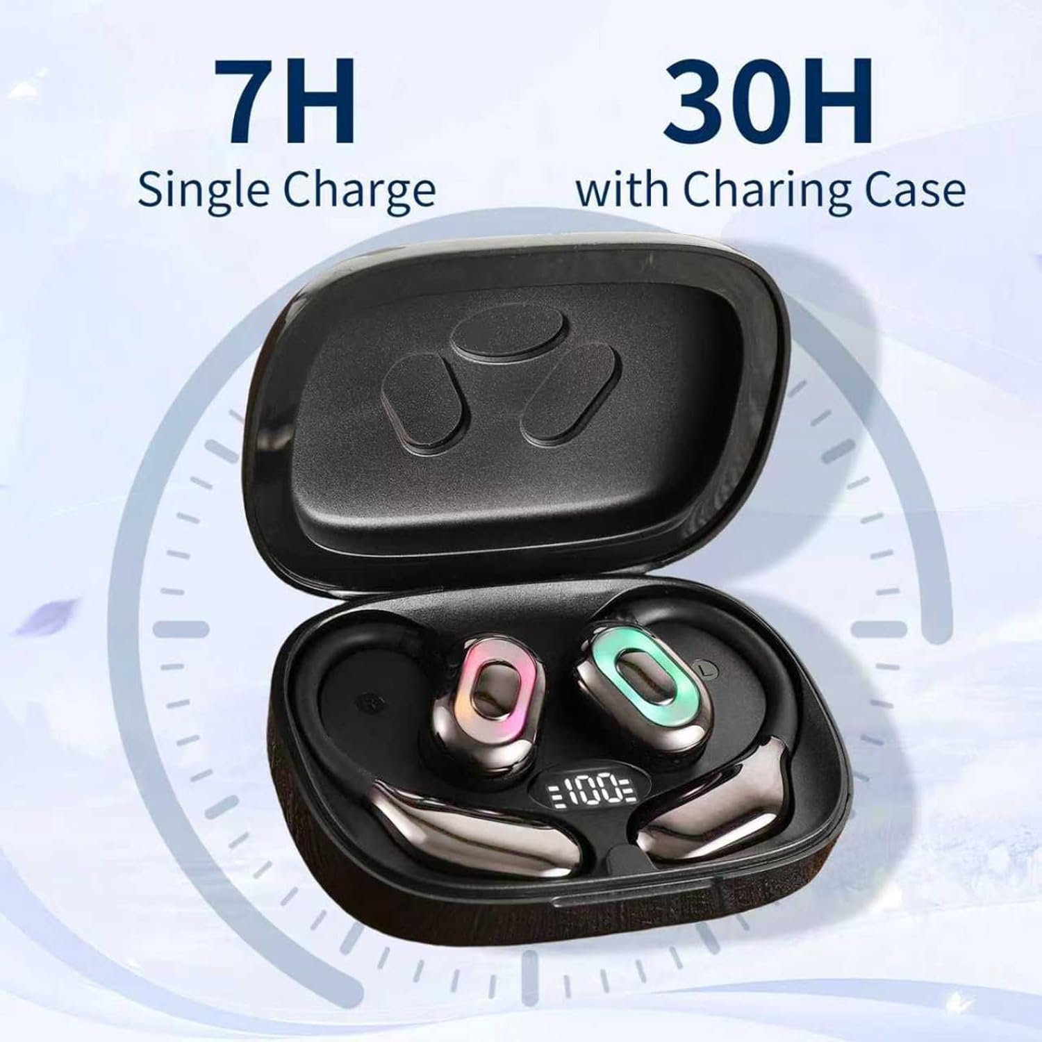 Open Ear Headphones, Bluetooth 5.4 Wireless Earbuds with Smart Digital Display, Powerful Sound,Clear Calls, IPX4 Waterproof, Ultra-Comfort, 30H Playtime for Running Workout Sports, Black