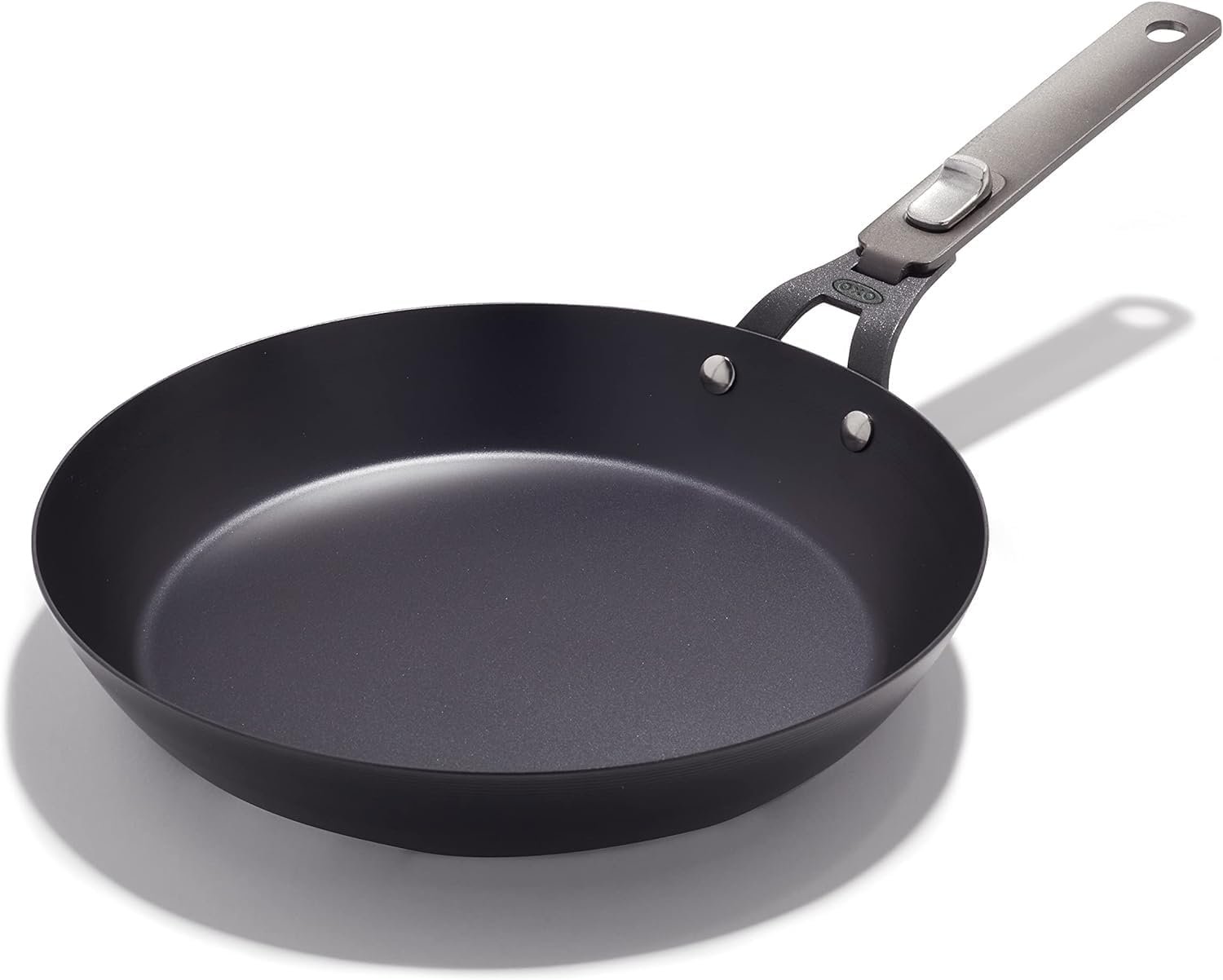 OXO Outdoor Pre-Seasoned Carbon Steel 10″ Frying Pan Skillet, Detachable Handle for Easy Storage, Indoor Use, Nonstick with Use, Induction Suitable,Oven & Broiler Safe,Browning, Grill,Sear,Saute,Black