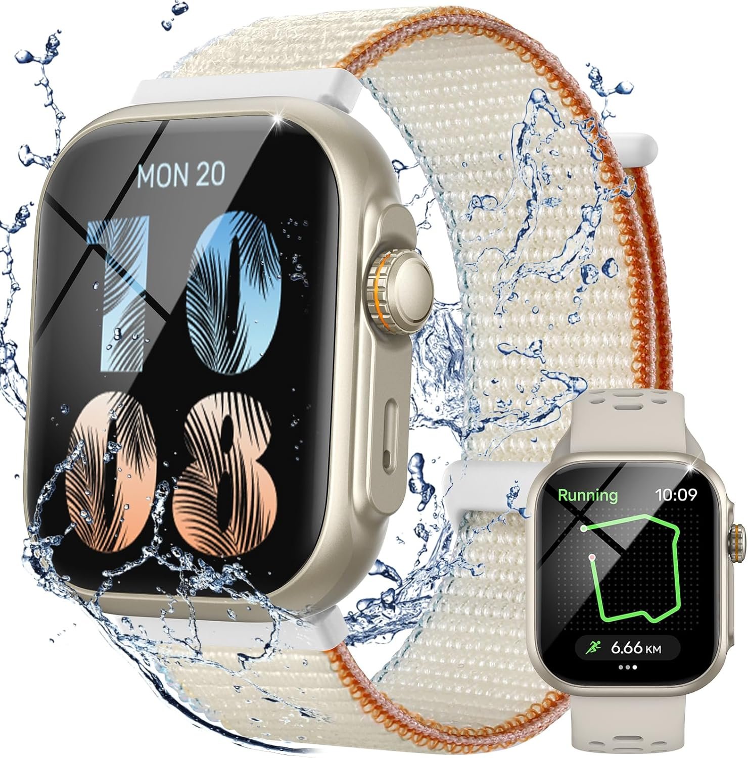 【DOUBLE THE BANDS, 100+ FACES – STYLE FOR EVERY MOOD】Switch up your style with a 1.85″ HD full-touch display and two included bands—breathable nylon for workouts, soft silicone for daily wear. Choose from 100+ watch faces or upload your own for a truly personal look. Bright, bold, and made to match any vibe!
