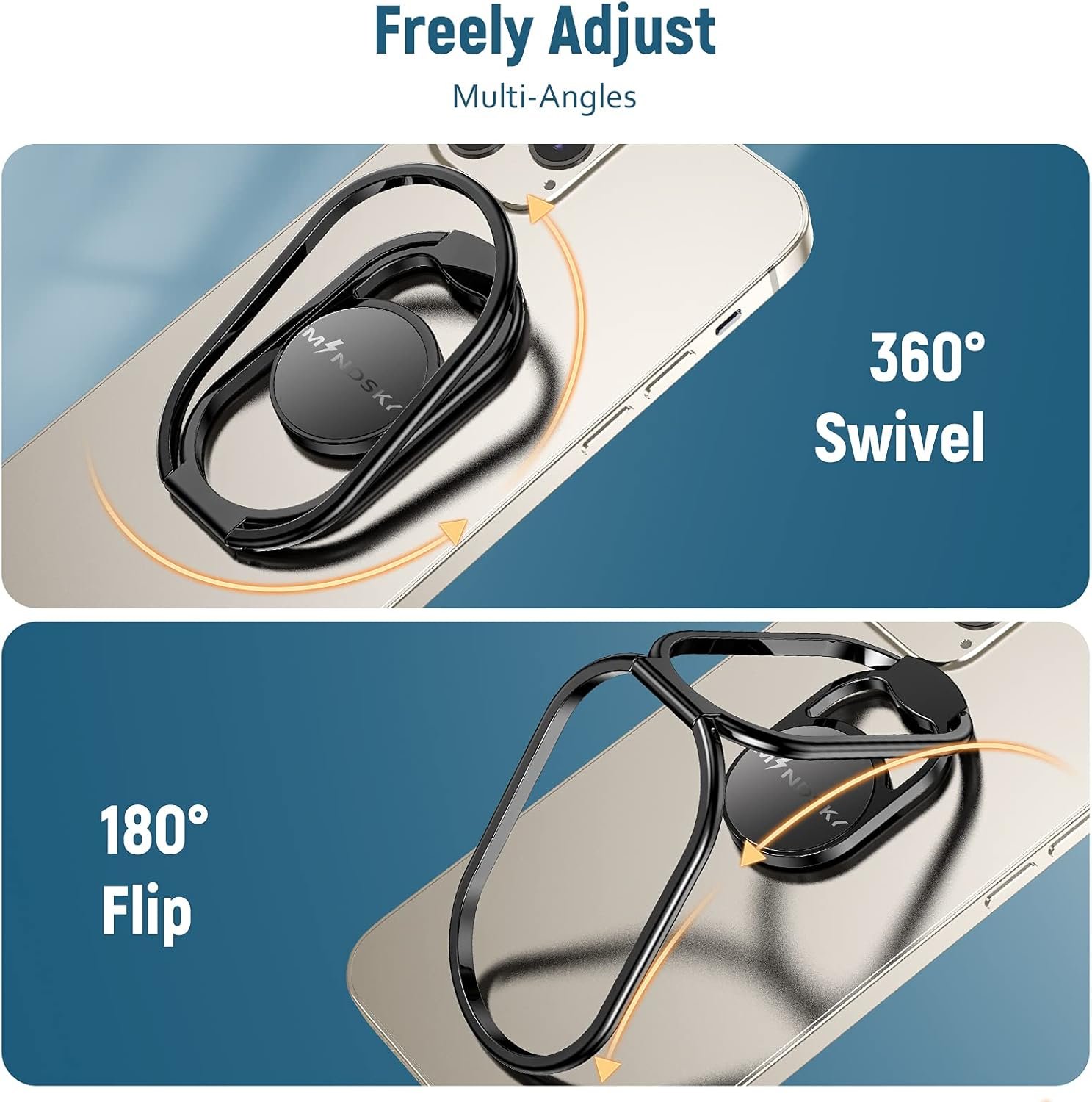 【Flexible Multi-Angle Design】2 adjustable rings make it more convenient to provide you more viewing angles than any other cell phone ring holder or phone stand. The phone kickstand is tested to withstand 10000 times of folding without getting loose.