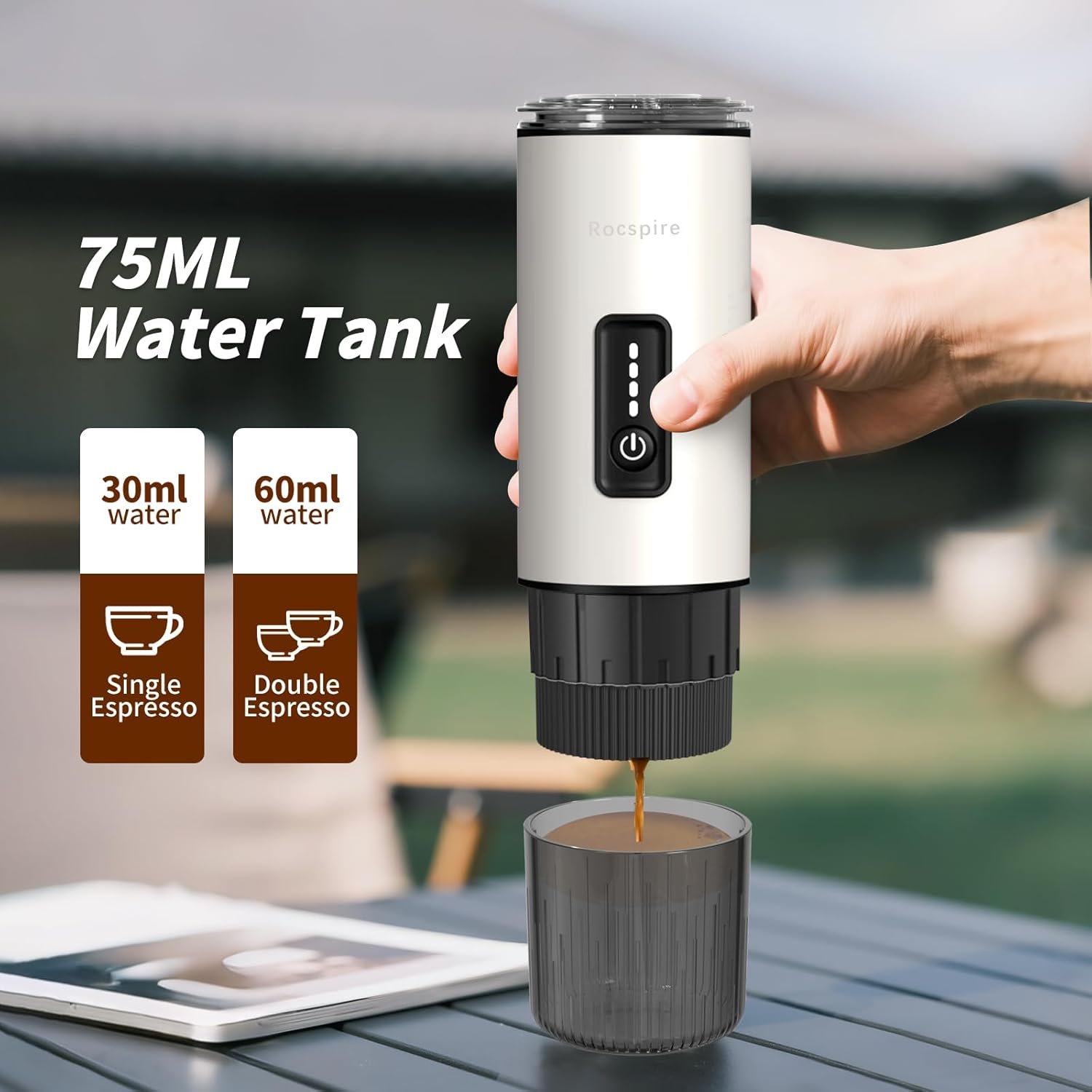 Portable Espresso Maker with Stainless Steel Body | 7500mAh Rechargeable Battery | 20 Bar Self-Heating with USB-C | Works with Most Capsules Compatible for Camping, Travel, Outdoor (White)