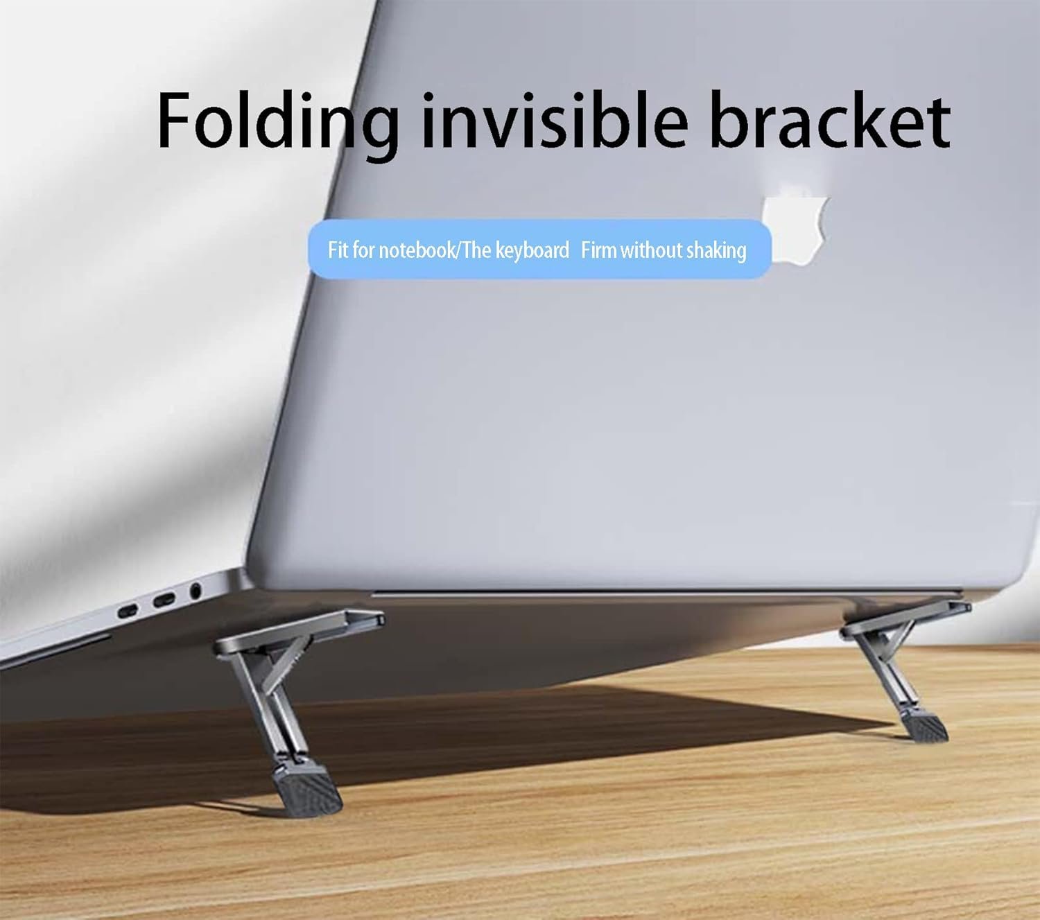 Portable Invisible Laptop Stand Mini Aluminum Cooling Pad Keyboard Riser Ergonomic with Computer Keyboard Stand, Laptop Kickstand, Laptop Legs, Light Grey