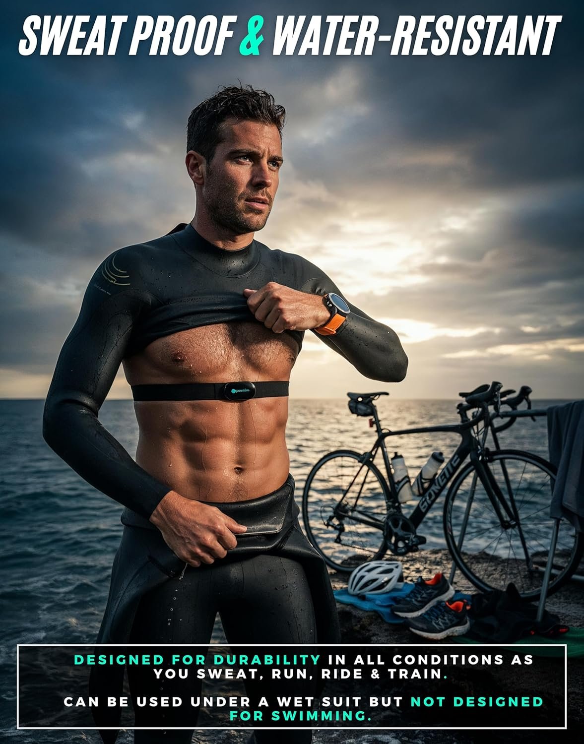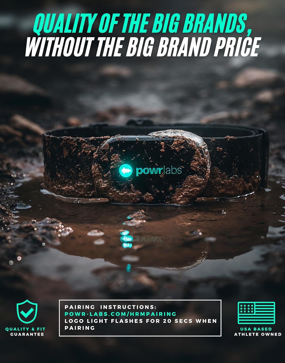 SURVIVES YOUR TOUGHEST TRAINING – IPX67 SWEATPROOF – Fully sweat proof and water resistant, the Powr Labs chest heart rate monitor handles torrential rain, brutal sweat sessions, and swimming under a wetsuit. Built to work as hard as you do.
