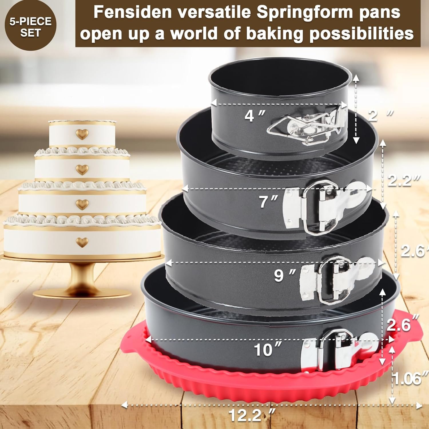 UNLOCK ENDLESS BAKING POSSIBILITIES: FENSIDEN Non-Stick Springform Cake Pans with a Silicone Cheesecake Pan Protector, for Baking Cheesecake, Lasagna, Deep Dish Pizza, Quiches, Tart, and Casseroles
