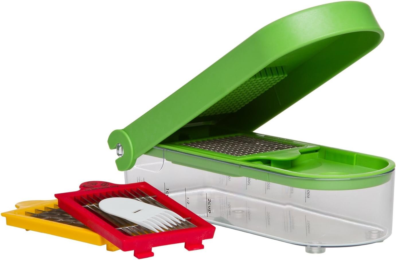 Stable & Compact Storage: Features a non-skid base container that stays secure during use and holds up to 2 cups of chopped ingredients. All blade inserts store neatly inside the container for compact and safe storage.
