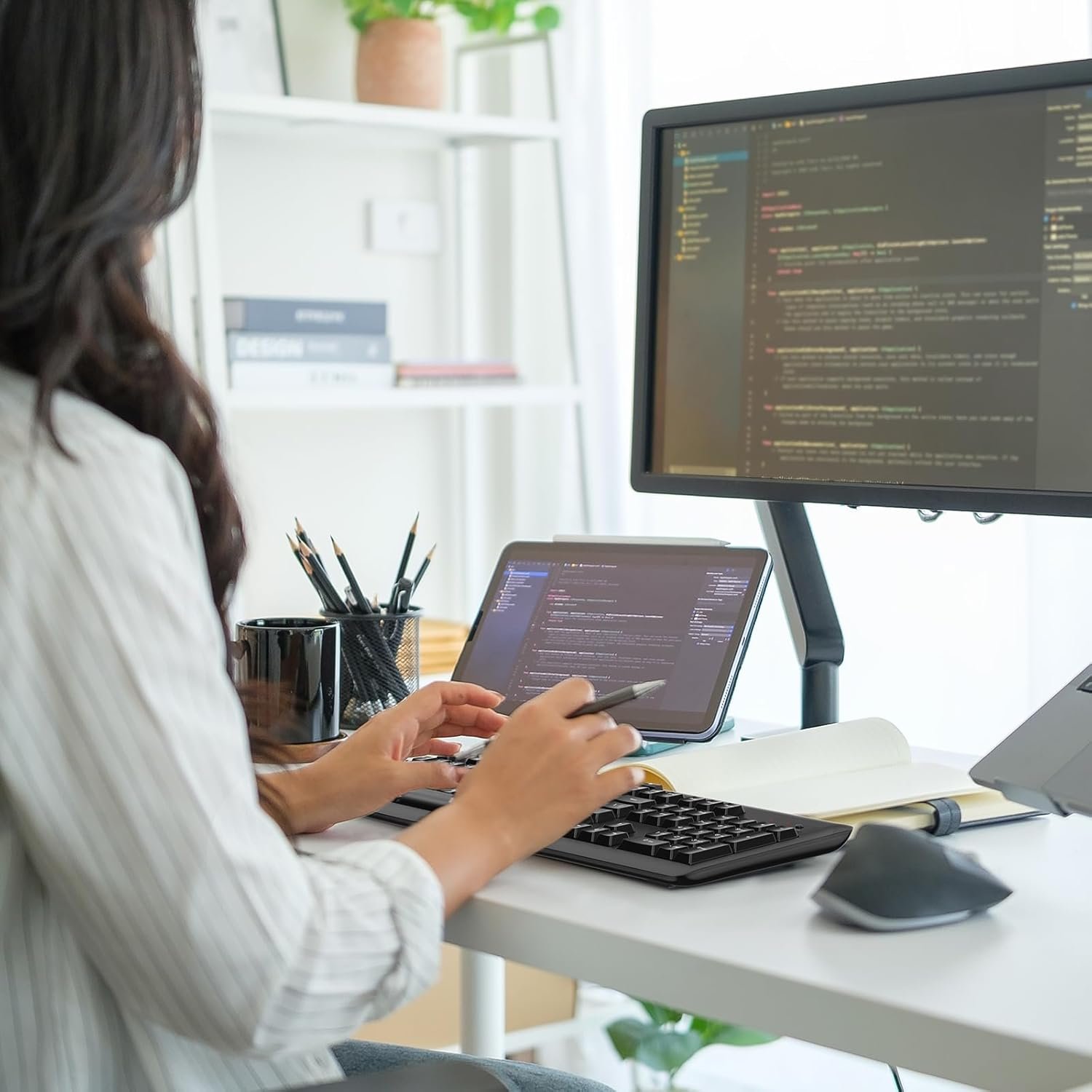 【Silent Keys】 With noise-canceling design, you don’t need to worry about disturbing others around you whether you are working in a quiet office or late at night.