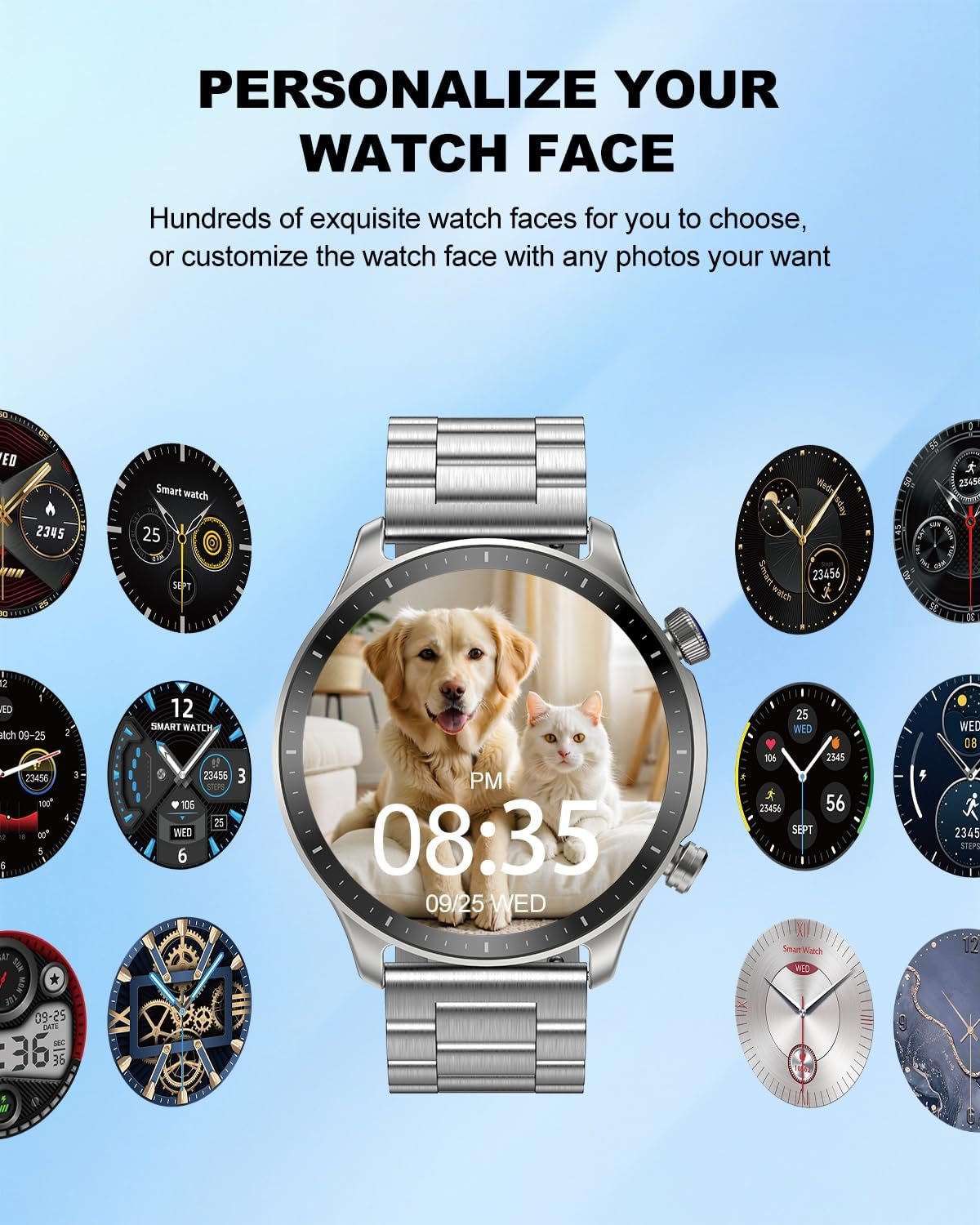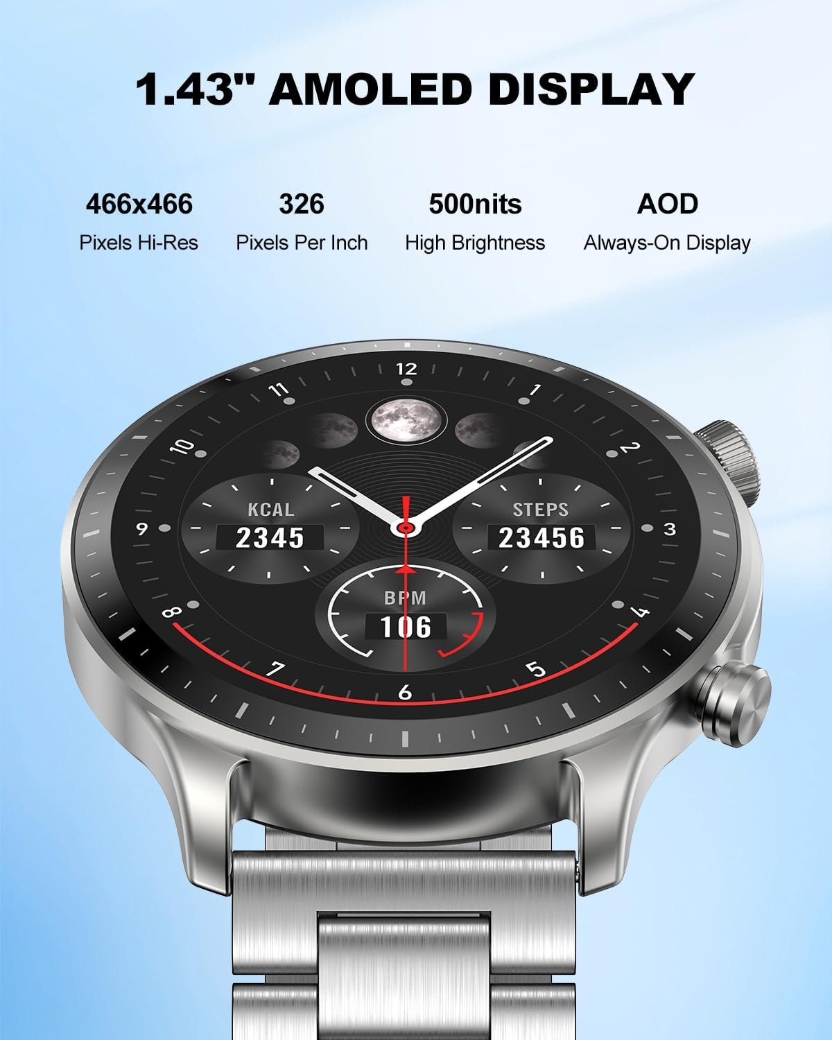【1.43-inch AMOLED Screen, Customizable Dial】 This smartwatch features an energy-efficient 1.43-inch round AMOLED display with a resolution of 466×466 pixels, providing a wider, clearer, and brighter display. The fitness watch app offers over 100 customizable dials for you to choose from, or you can use any photo you like for personalization.