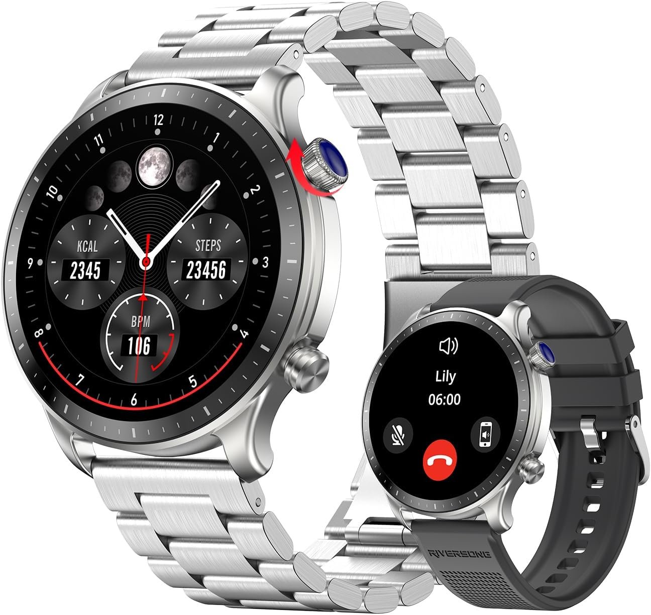 RIVERSONG Smart Watch for Men, 1.43″ AMOLED Display with Bluetooth Calling, Heart Rate, Sleep, and SpO2 Monitor, 100+ Sports Modes, for iPhone/Android, Titanium Silver