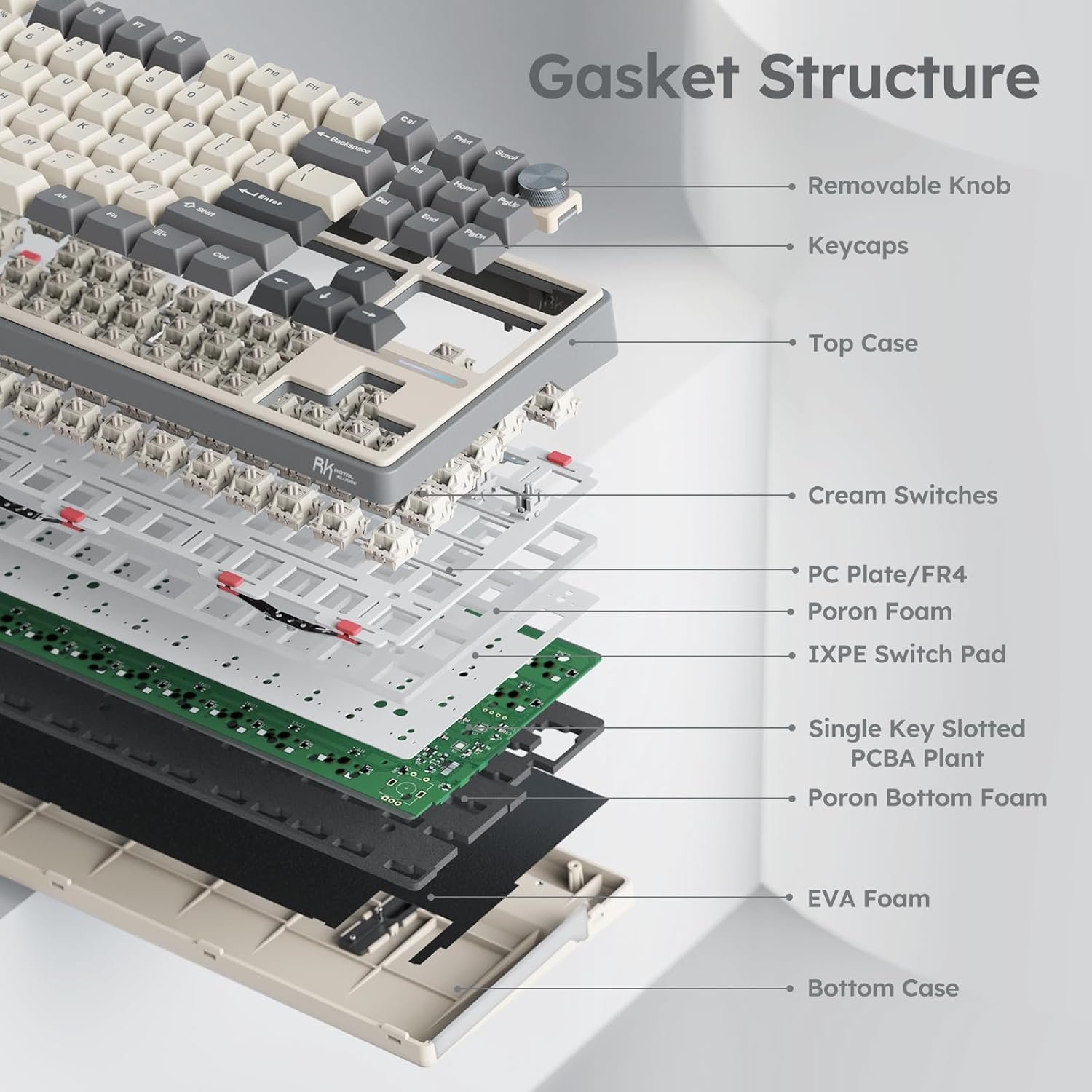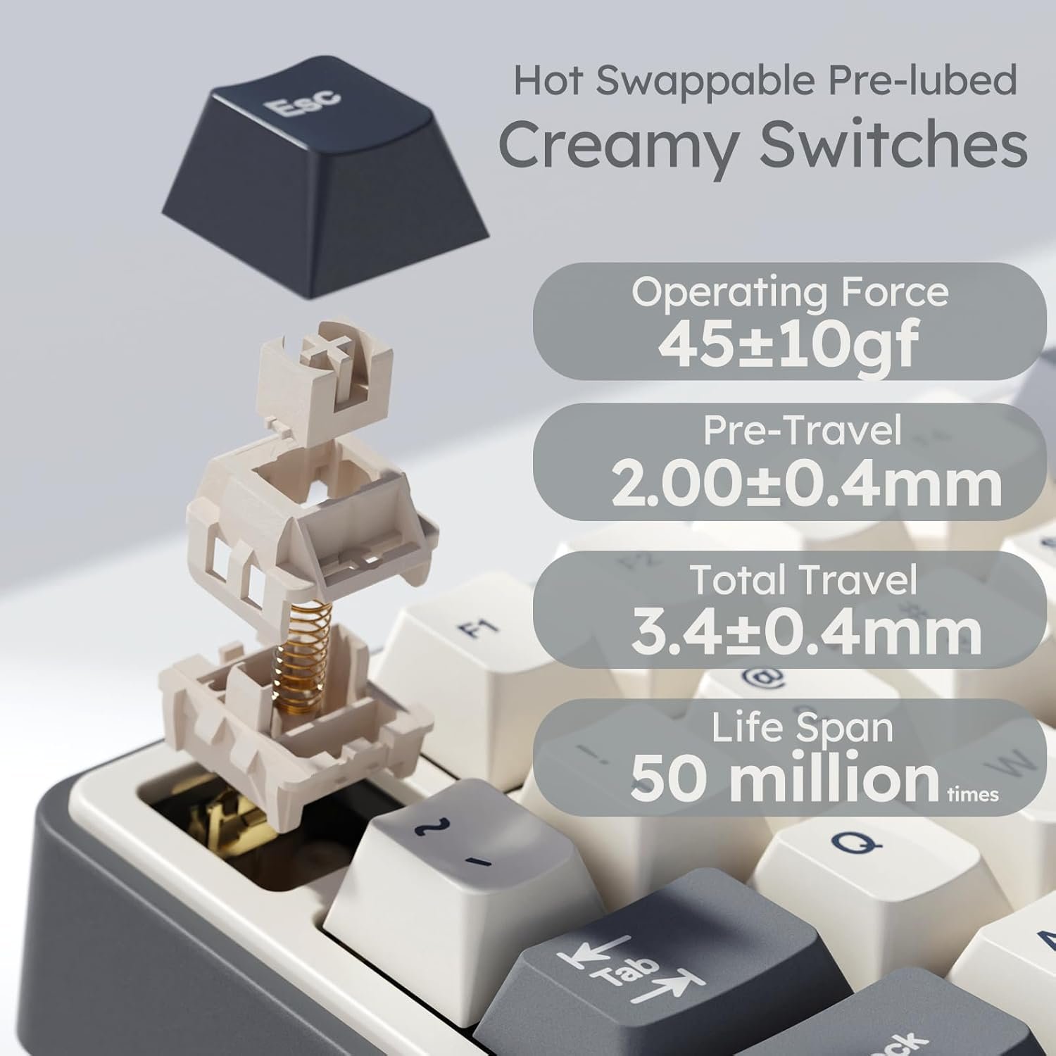 The creamy switch is linear mechanical switch, giving you a creamy and smooth sound feeling.