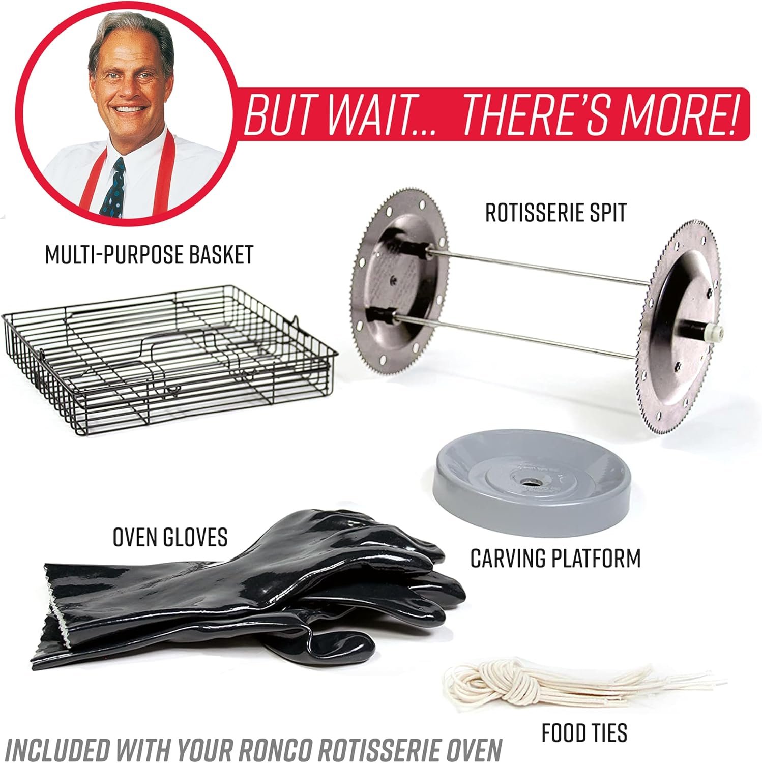 MORE THAN JUST CHICKEN – In addition to the rotisserie spit, the Ronco countertop rotisserie oven includes a multi-purpose basket so you can make more than just chicken! Deliciously roast ham, prime rib, fish, hamburgers, vegetables, kabobs and more!