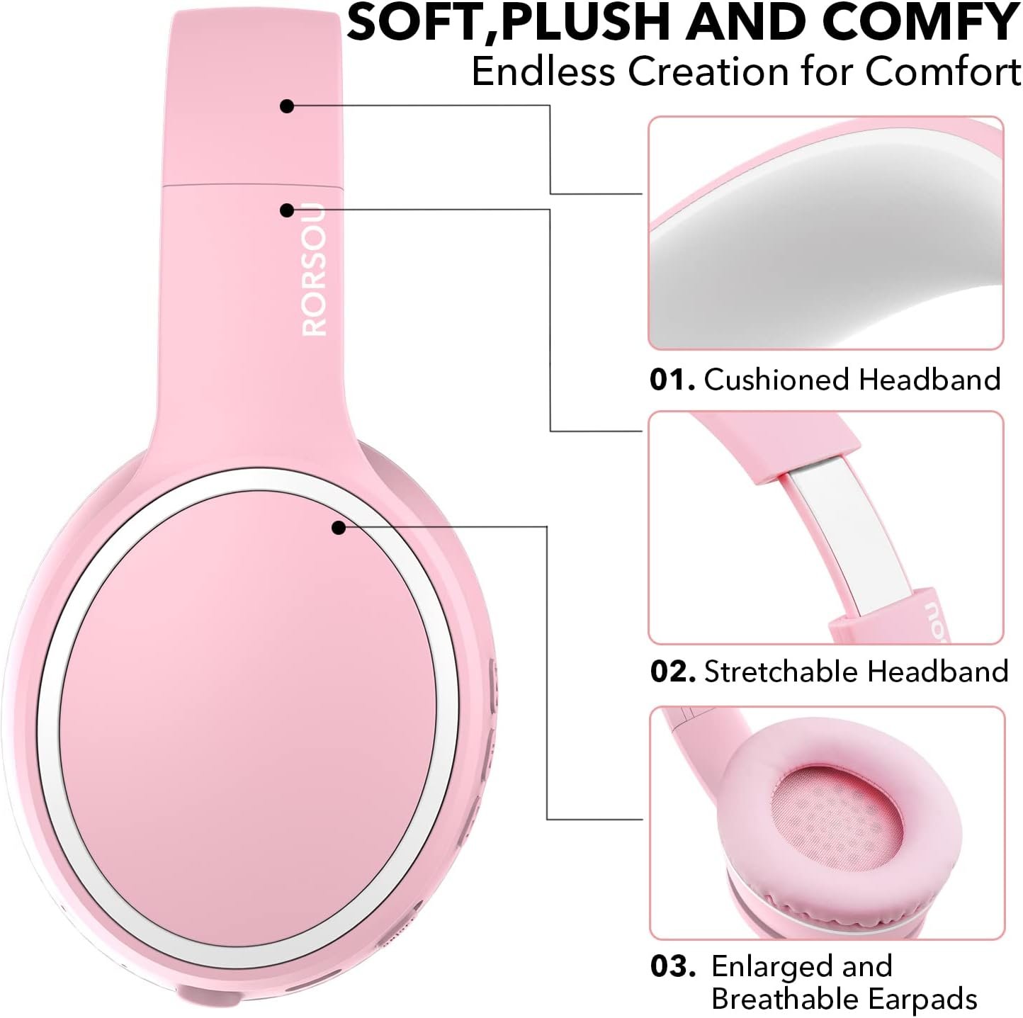 Ultra-soft ear cushions and padded headband provide you a fatigue-free listening experience even wearing these on-ear headphones during a long session. Adjustable slider helps you achieve the perfect fit without constraint. You can easily use these stereo headphones for your workouts, job commute or just for listening at home. RORSOU B10 wireless headphones is the best choice for travel, sport and daily use by Unisex Kids, Teens and Adults.