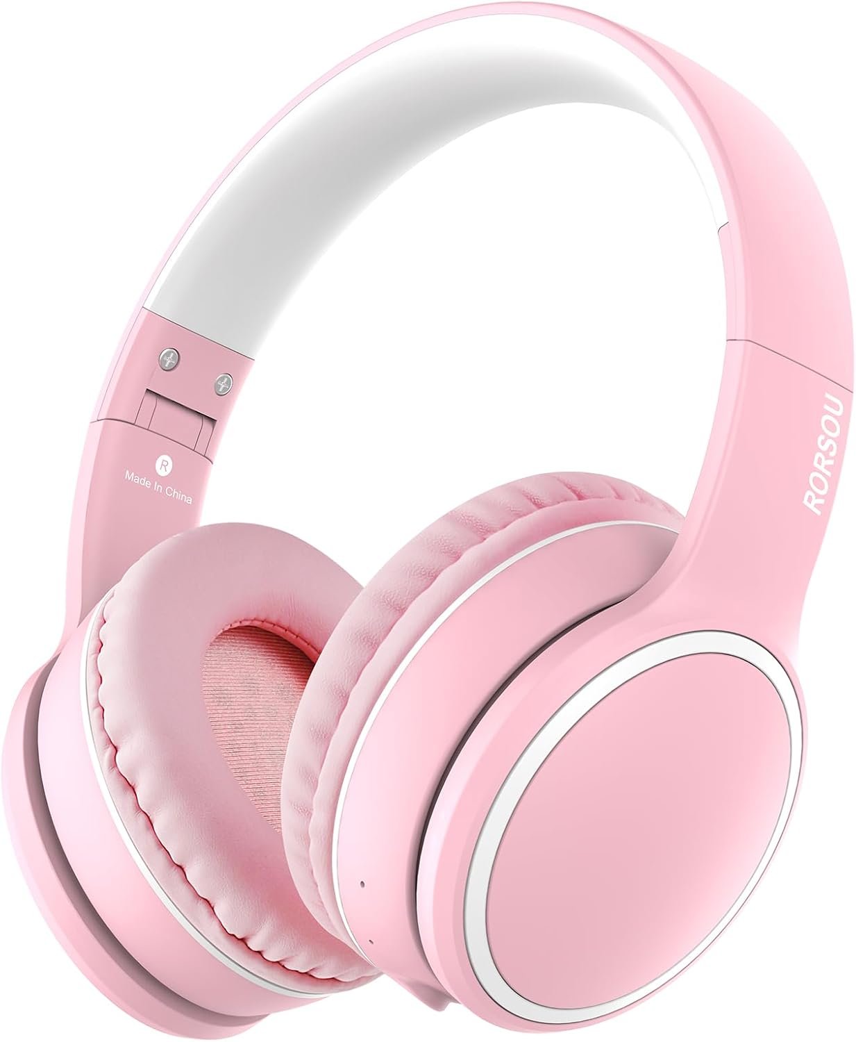 RORSOU B10 Wireless Over-Ear Headphones, Lightweight Folding Stereo Bass Bluetooth Headset with Mic, 50H Playtime, Volume Control, Bluetooth 5.3 Headphones for iPad/Travel/Tablet/PC (Pink)