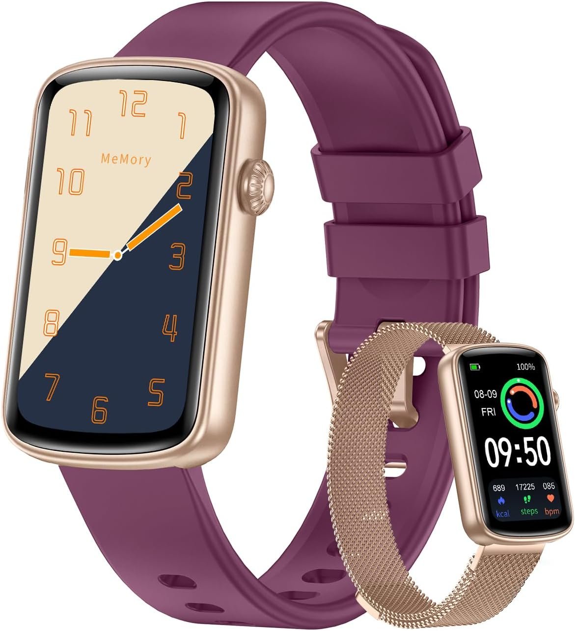 [Fitness Trackers for Women Men & 2 Changeable Bands] – This fitness tracker watch features a slim and stylish look, equipped with a 1.47-inch HD full-touch display and light weight body for a smooth user experience. It comes with 2 changeable bands including a sport band and a stainless steel band, which are perfect for any outfit and occasion.