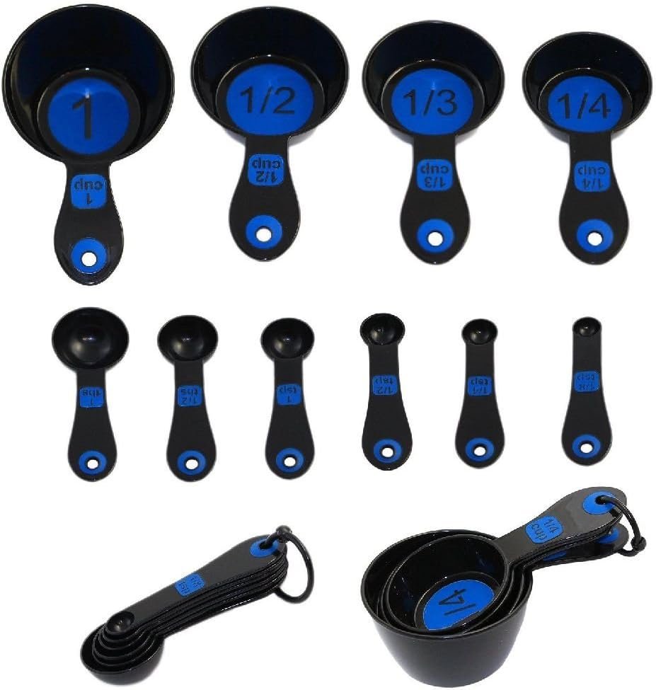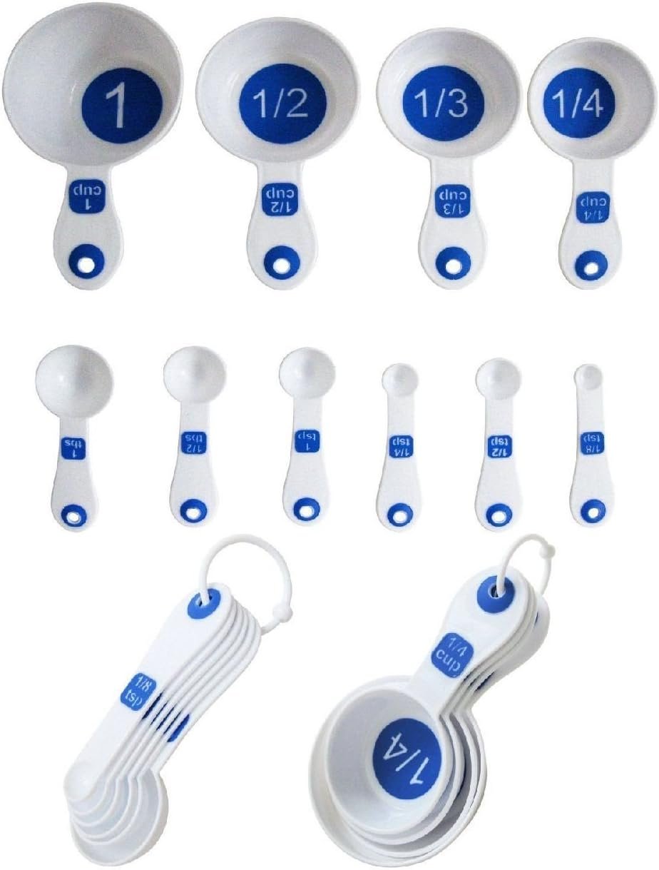 Set of 10 Piece Measuring Spoons and Measuring Cups \(White & Blue)