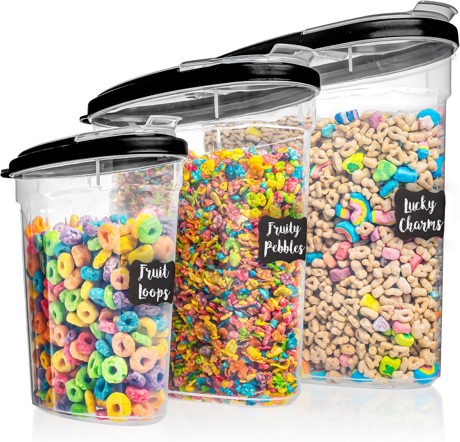𝐅𝐨𝐨𝐝 𝐒𝐚𝐟𝐞 𝐓𝐫𝐚𝐧𝐬𝐩𝐚𝐫𝐞𝐧𝐭 𝐂𝐨𝐧𝐭𝐚𝐢𝐧𝐞𝐫𝐬: These BPA-free plastic cereal storage containers are designed for more than cereal. Made from food safe and quality material, they’re perfect for storing bulk items like rice, sugar, flour, pasta, and snacks. A great choice for food storage containers for pantry, they serve as dependable canisters with airtight lids for everyday kitchen essentials.