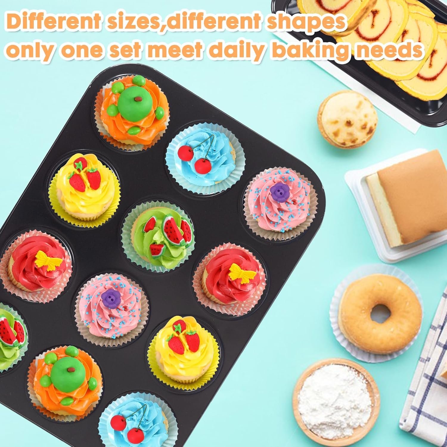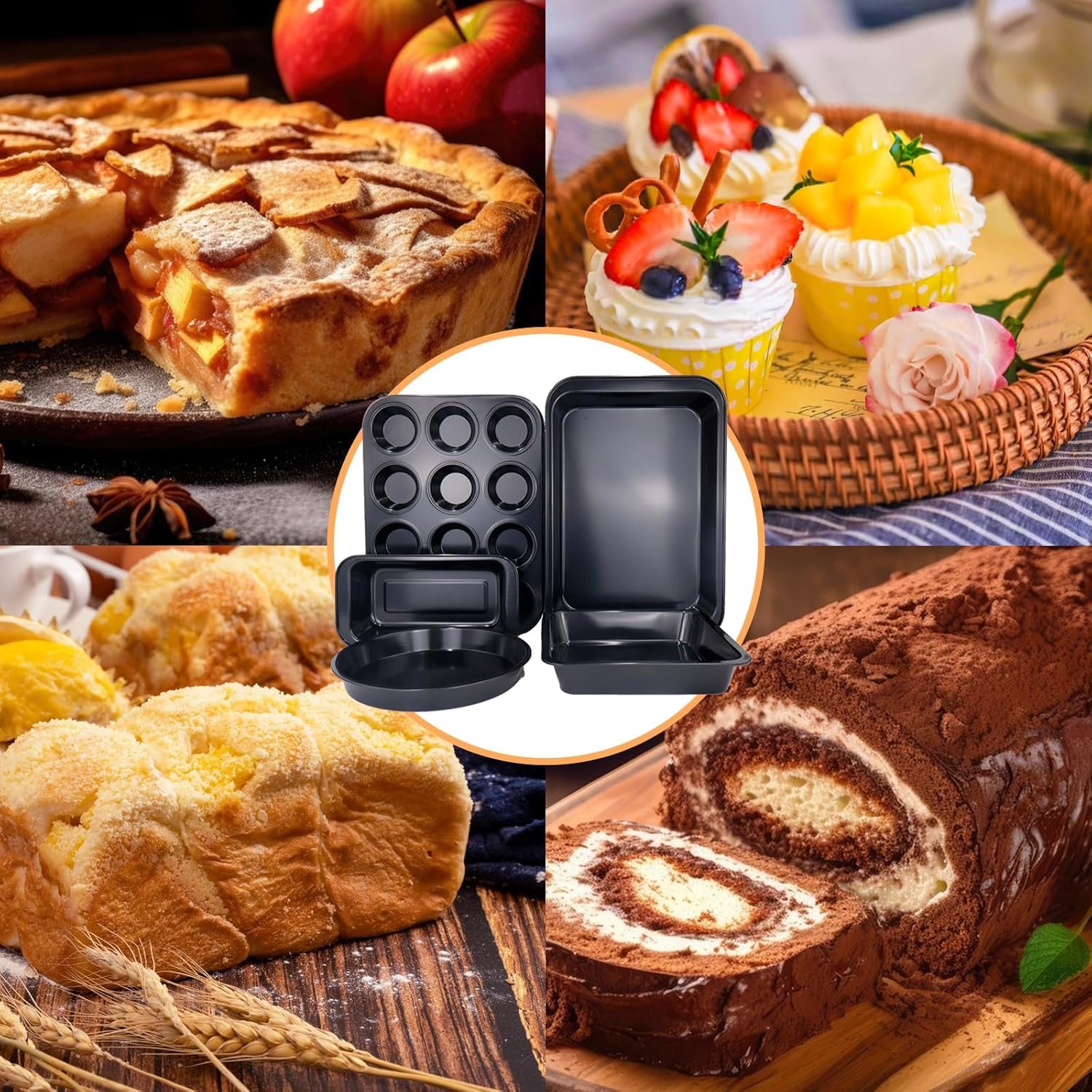 Multi-Purpose: It’s a versatile baking pan set for all people. Perfect for cooking, banking, roasting and making cookies. You can cook anything you want, like muffins, bread, cakes, apple pie, tiramisu, cookies, pizza, birthday cake, etc; suitable for various events and occasion, such as wedding, birthdays, engagement, tea party, baby shower, Christmas, Mother’s day, anniversary, graduation, halloween, etc.
