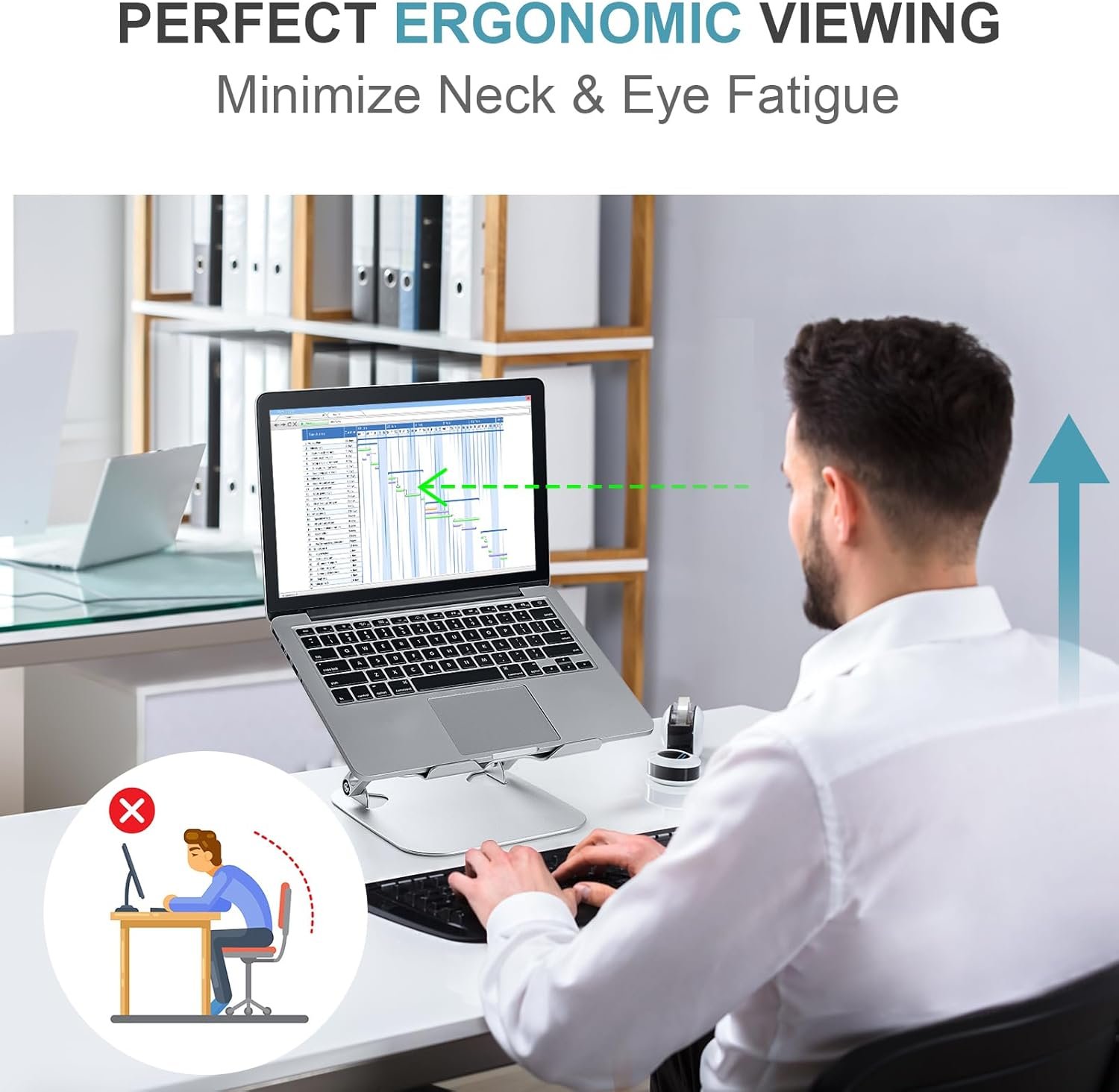 [Perfect Ergonomic Viewing]- Our laptop stand is designed to provide the perfect ergonomic viewing. By elevating the screen to an appropriate height, our laptop cooling stand can help you avoid discomfort in the neck caused by looking down and reduce strain on your eyes from being too close to the screen.
