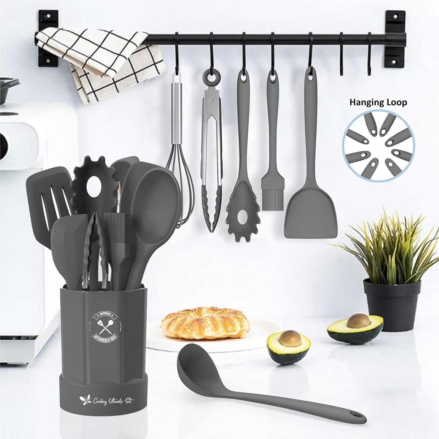 Deedro 16-Piece Silicone Kitchen Utensils Set with Holder not only can decorate your kitchen but also keep you in a good mood while cooking.