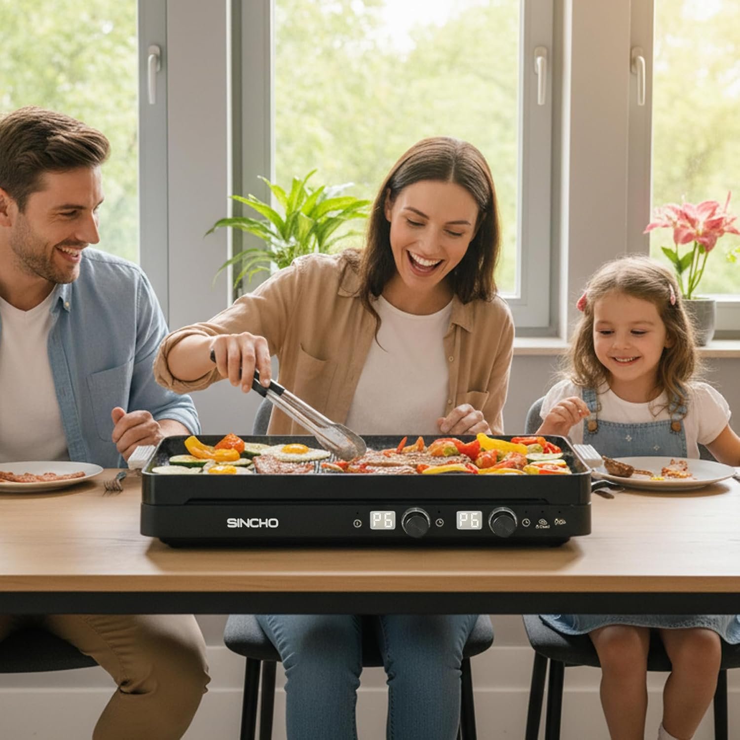 Removable Non-Stick Griddle Pan – Includes a heat-resistant griddle with rubber handles for easy handling; ensures even heating and healthy, low-oil cooking with excellent browning and flavor.