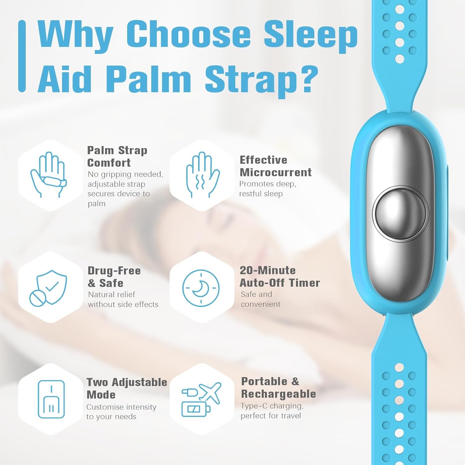 【Natural Therapy for Mind-Body Balance】 Utilizing microcurrent technology to stimulate neurotransmitters in the cerebral cortex, it helps regulate emotions, relieve stress, and promote a calming and restful sleep experience. Safe and effective.