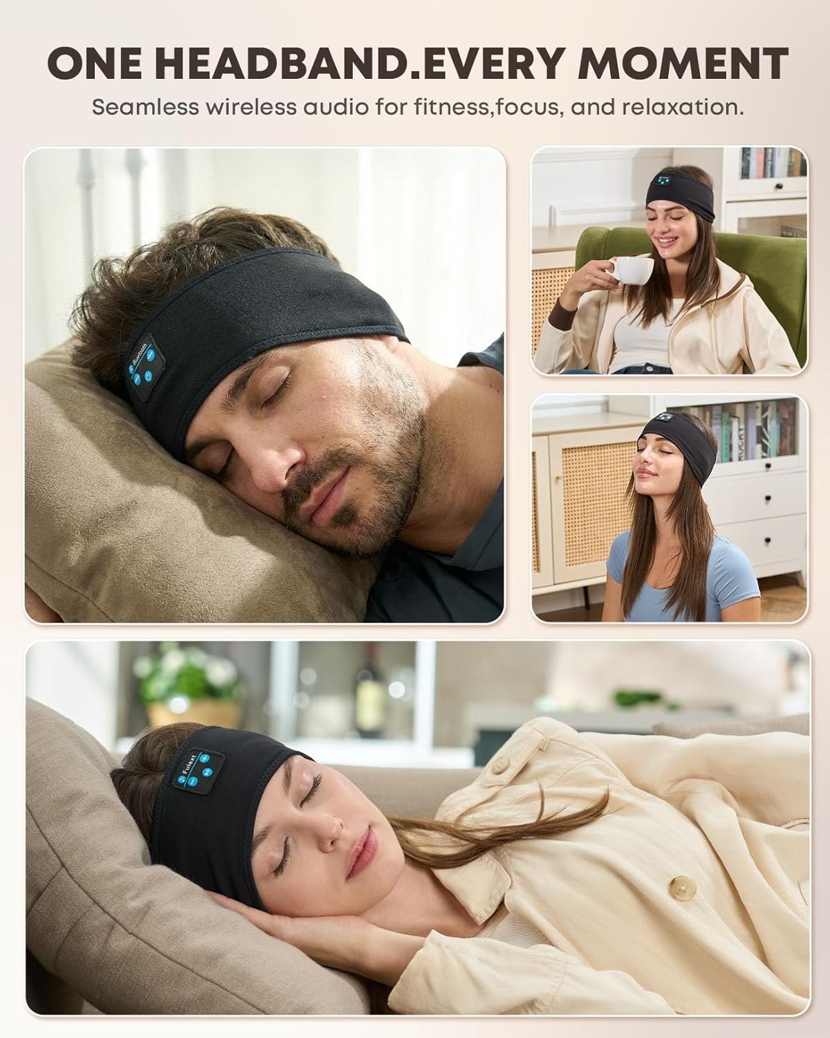 Sleep Headphones & Sleep Mask & Bluetooth Sports Headband 3 in 1: Fulext Bluetooth sleep headphones feature a headband design with wireless headset inside, allow you to enjoy hands free music, and protect you from being disturbed by your mess hair and sweat. Wireless sleep headphones is perfect suitable for nap, air travel, gym, workout, running, yoga as well as sleeping. Bluetooth headband headphones is the unique gift for family or friends with a exquisite packaging