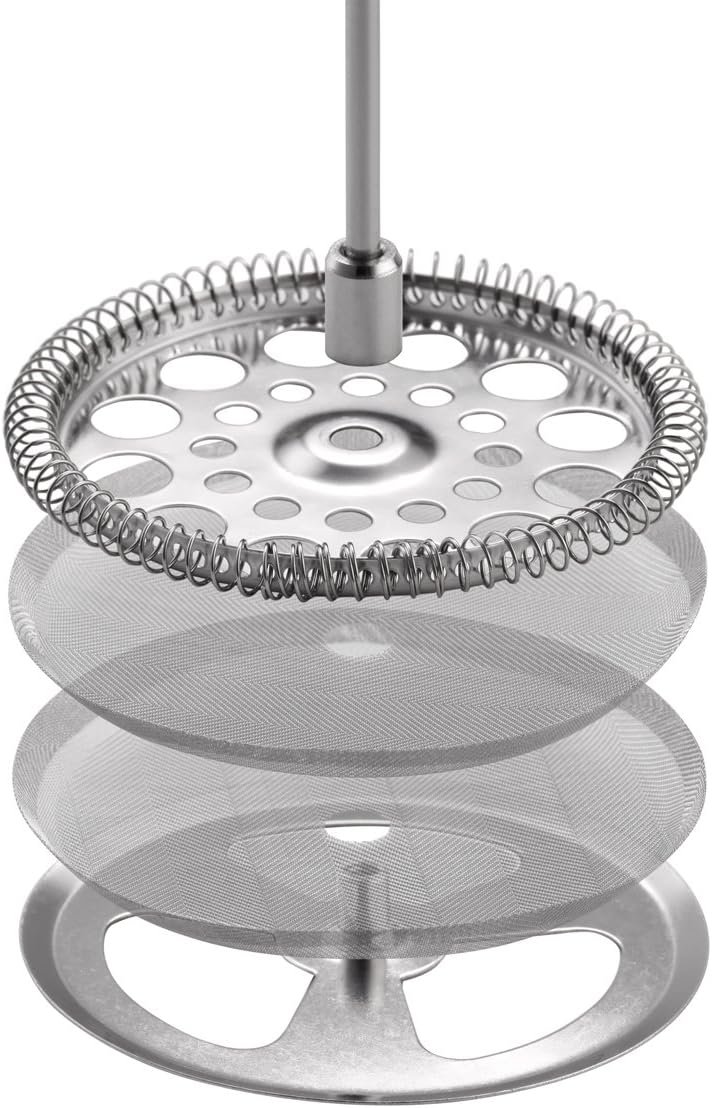 Double Screens System—Far More Superior than other French Presses in removing “ALL” grounds from your coffee giving you an amazingly smooth cup of coffee. The 3-part stainless steel filter helps extract your coffee’s aromatic oils and acids from the bean for maximum subtle flavors. It’s the preferred method for brewing for coffee enthusiasts everywhere
